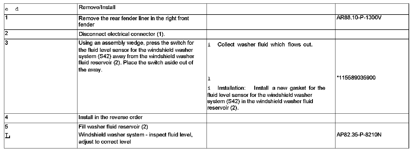 AR82.35-P-6005V Removing/installing The Fluid Level Sensor For The Windshield Washer System