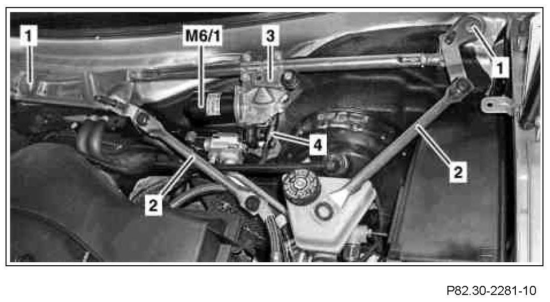 3 Plug the electrical connector (4) into the wiper motor (M6/1).