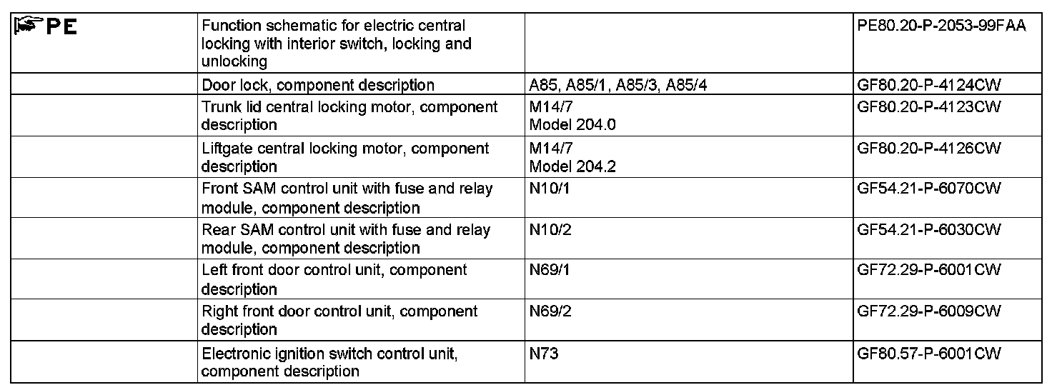 Opening the trunk lid or the tailgate is enabled or inhibited by the trunk lid external operation switch (S88/8) (on model 204.0) or the tailgate external operation switch (S88/8) (on model 204.2) by the rear SAM control unit.