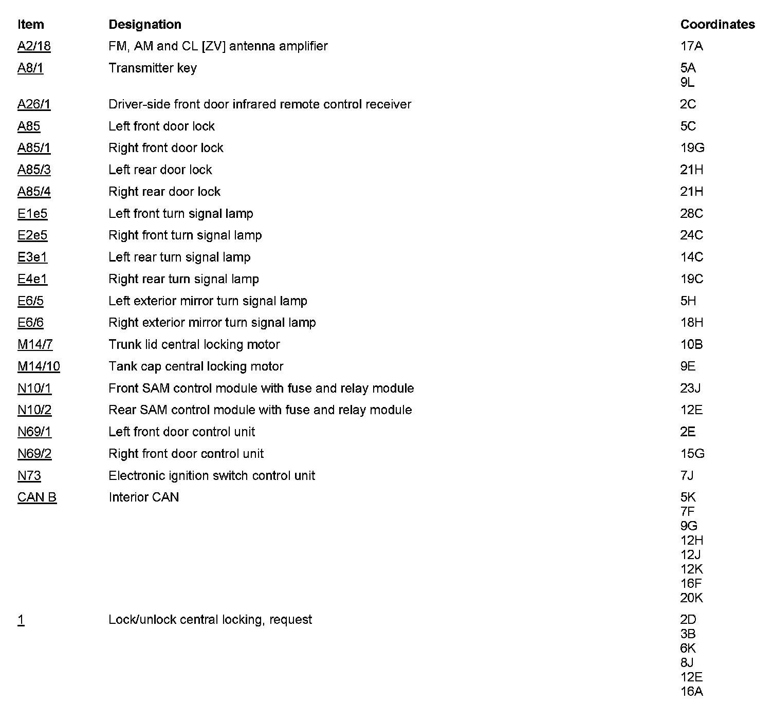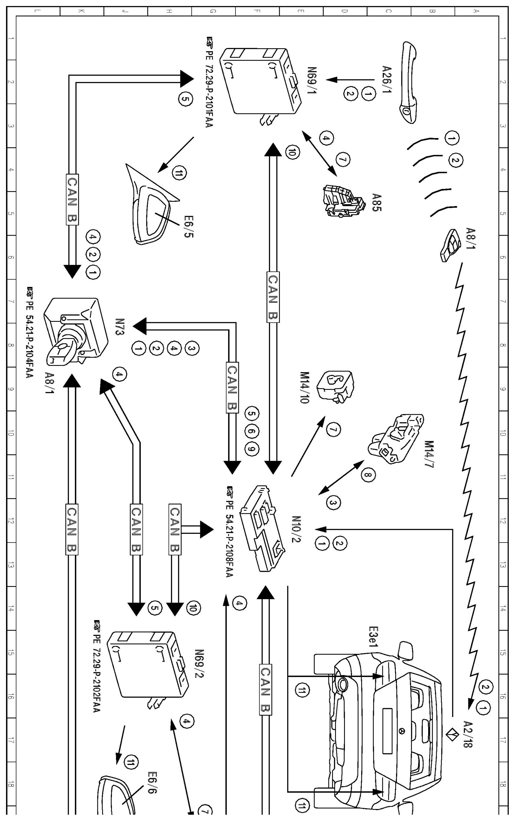 PE80.20-P-2052FAA Electrical Function Schematic For Central Locking, Operation With Transmitter Key
