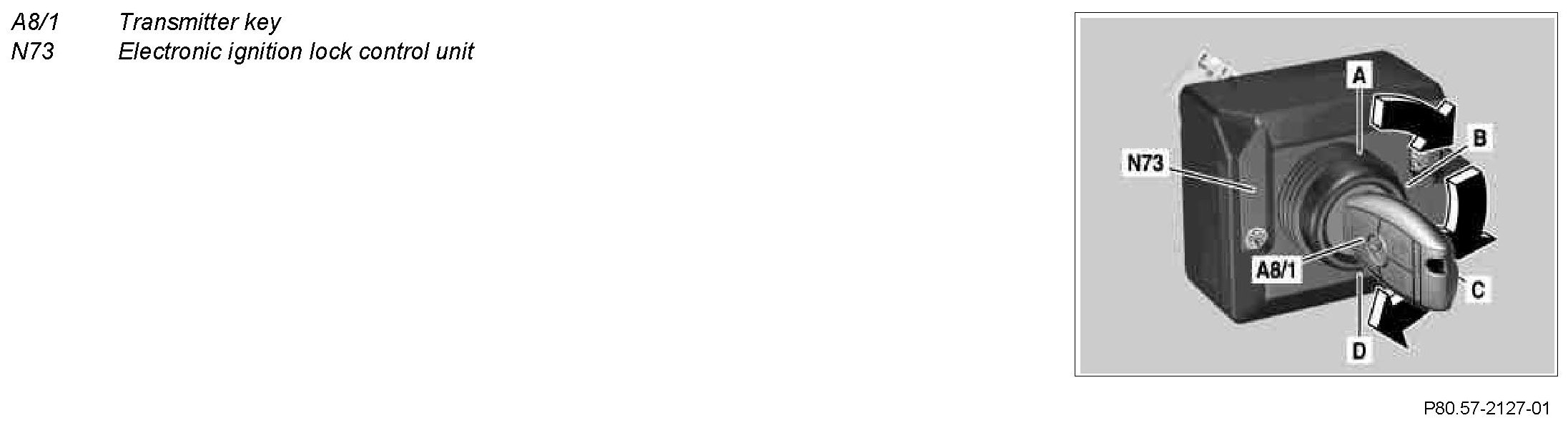 Turning transmitter key back to left switches off the engine. The following functions are implemented in the electronic ignition lock control unit: