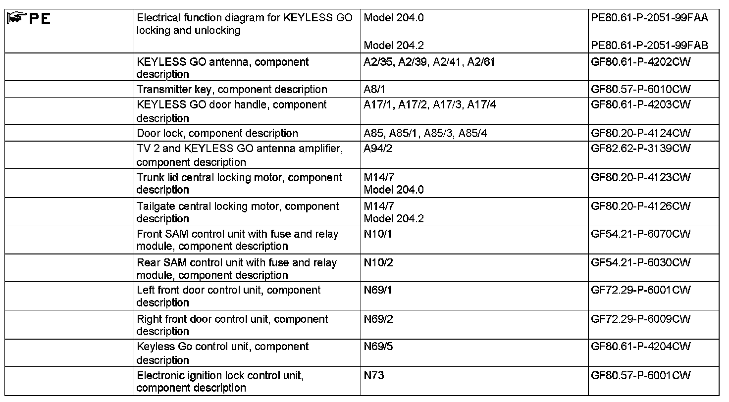 The rear SAM control unit recognizes when the tailgate control button is actuated and is relayed to the KEYLESS GO control unit via interior CAN.