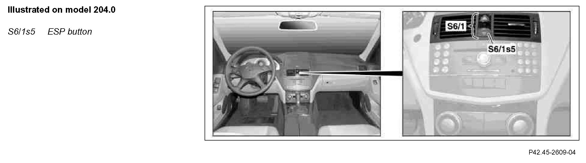 The status of the ESP button is read in by the front SAM control unit with fuse and relay module (N10/1) via the instrument panel LIN and passed on to the Electronic Stability Program control unit (N30/4) via the chassis CAN.