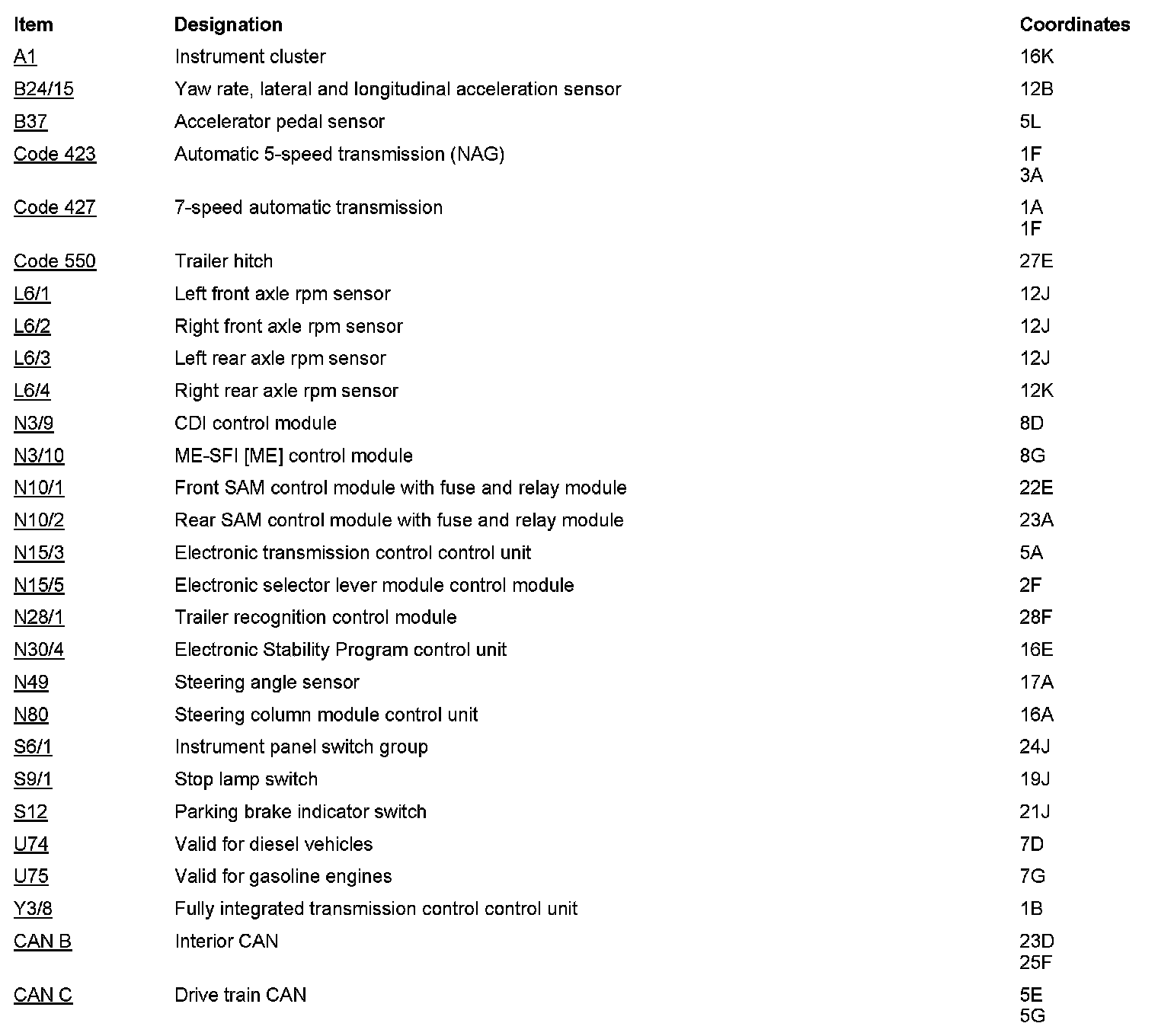 Component Locations: Component Location photographs can be found via their component names at the vehicle level. Component Locations