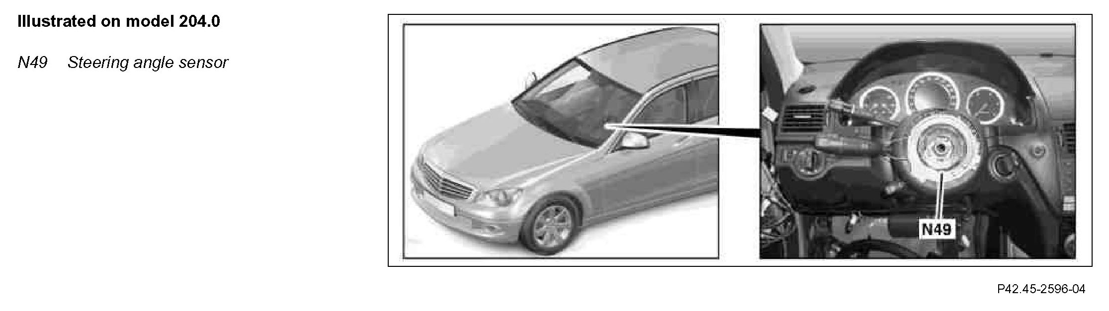 The steering angle sensor is integrated in the steering column module control unit (N80).