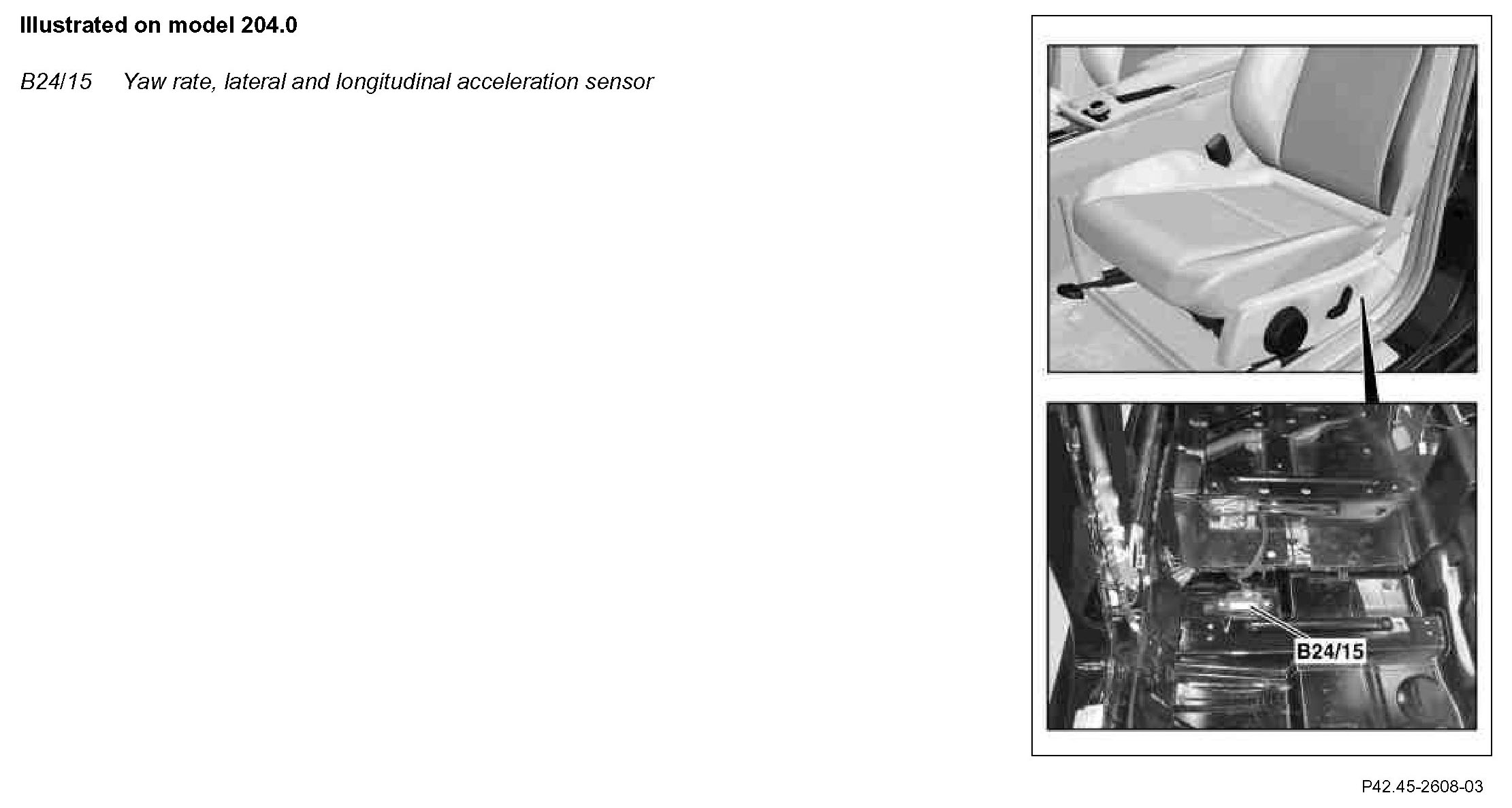 The yaw rate, lateral and longitudinal acceleration sensor is located below the driver's seat on the vehicle floor.