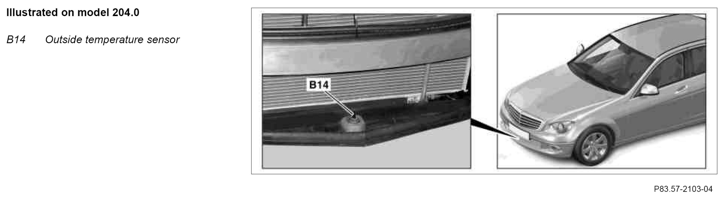 The outside temperature sensor is located in the center behind the front bumper in front of the radiator.