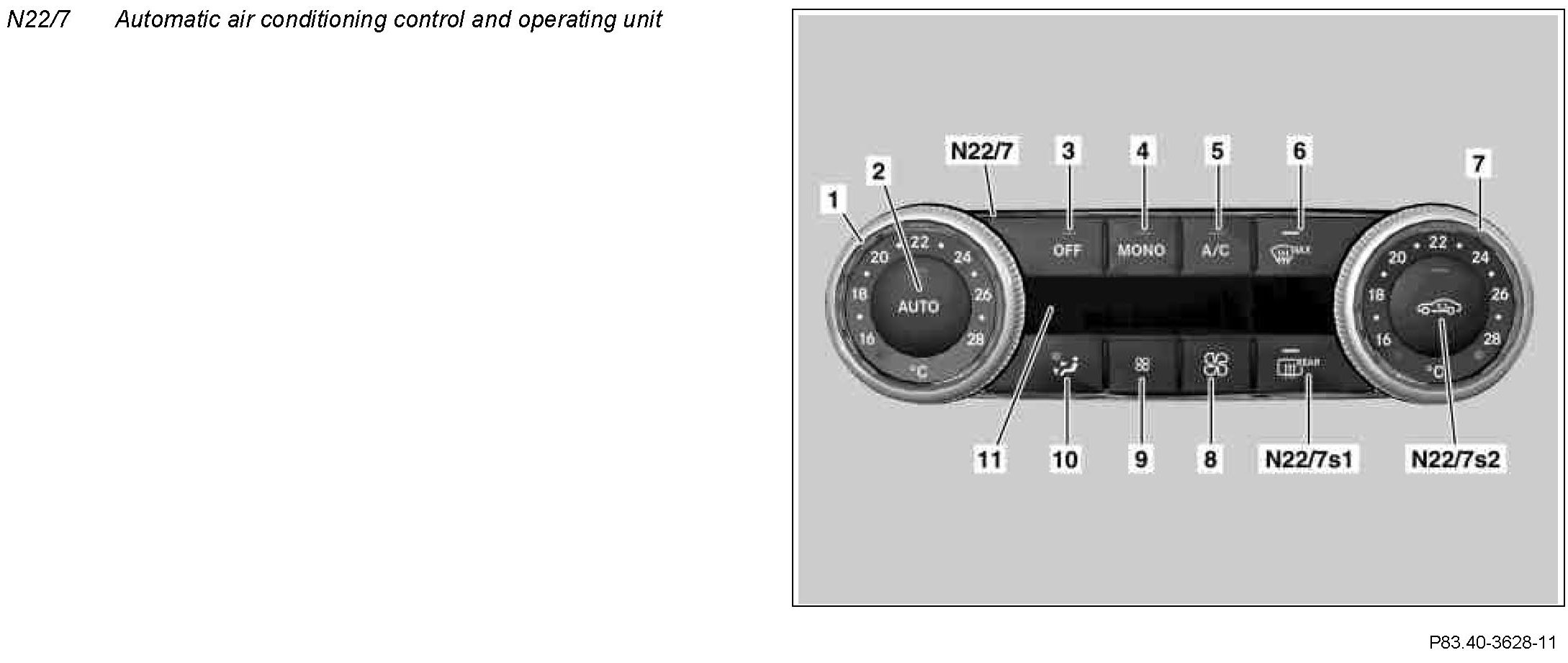 Pressing the Mono button causes the driver side temperature settings to be taken over for the front passenger side.
