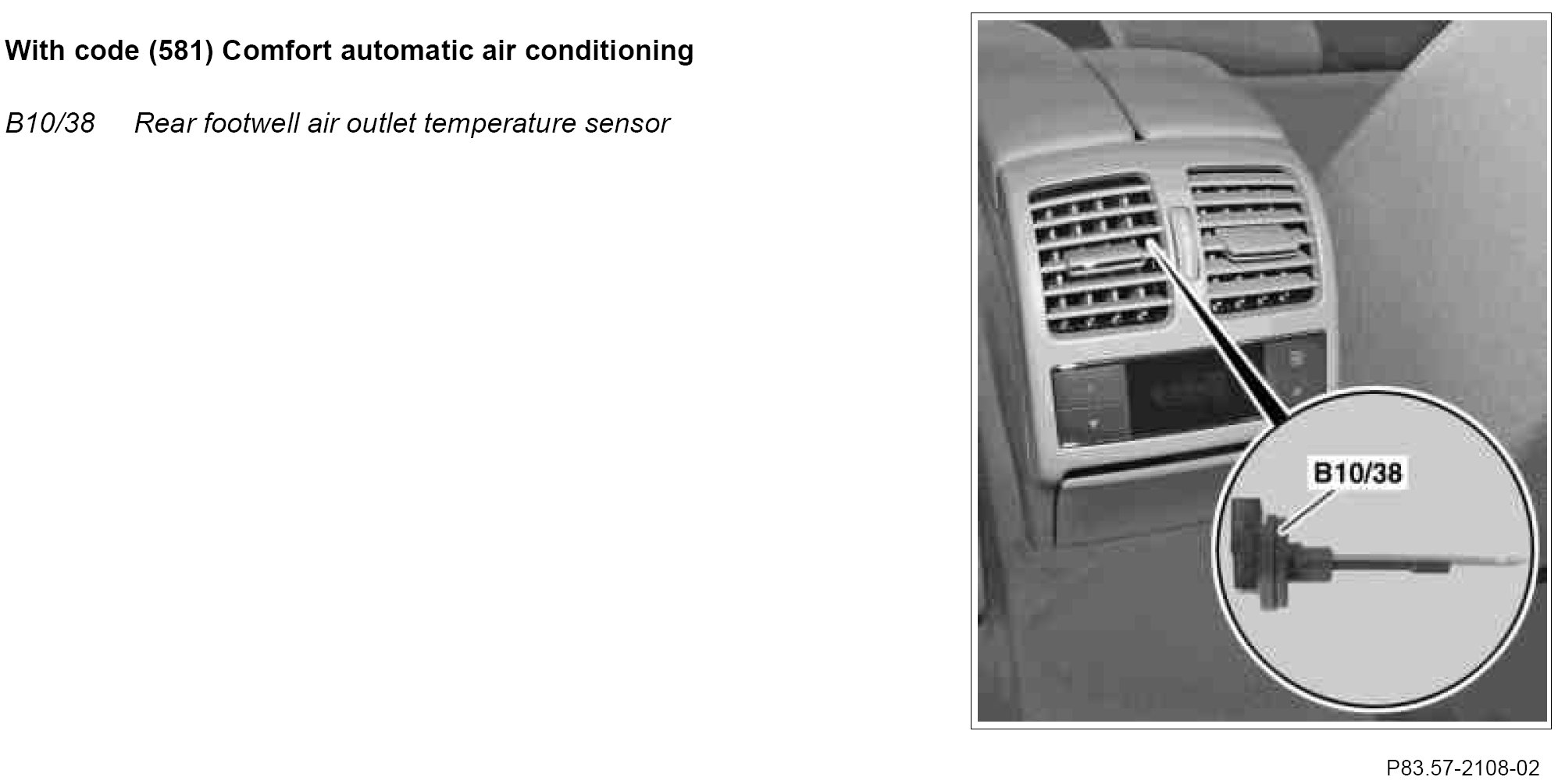 The air outlet temperature sensors record the temperature of the air flowing out of the relevant air vent. The air outlet temperature sensors are discretely read in by the automatic air conditioning control and operating unit (N22/7) and evaluated for controlling the interior climate.