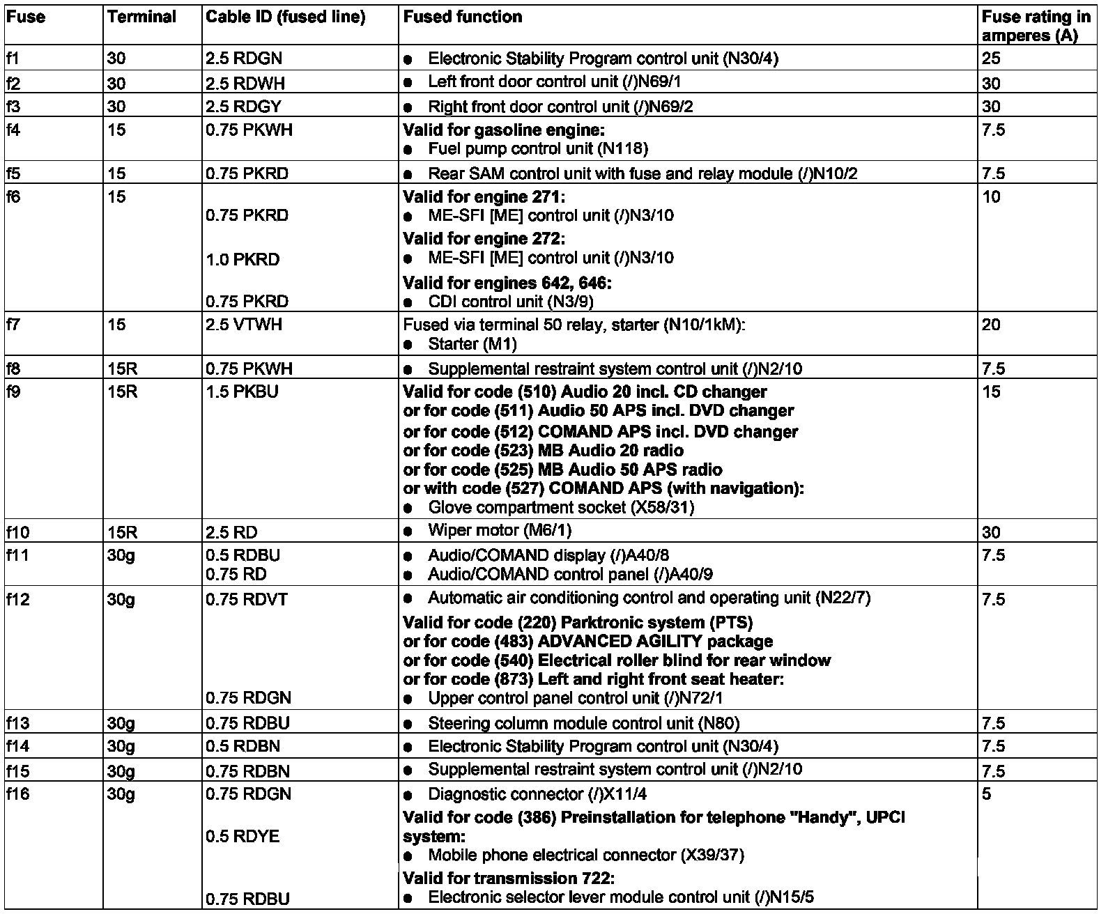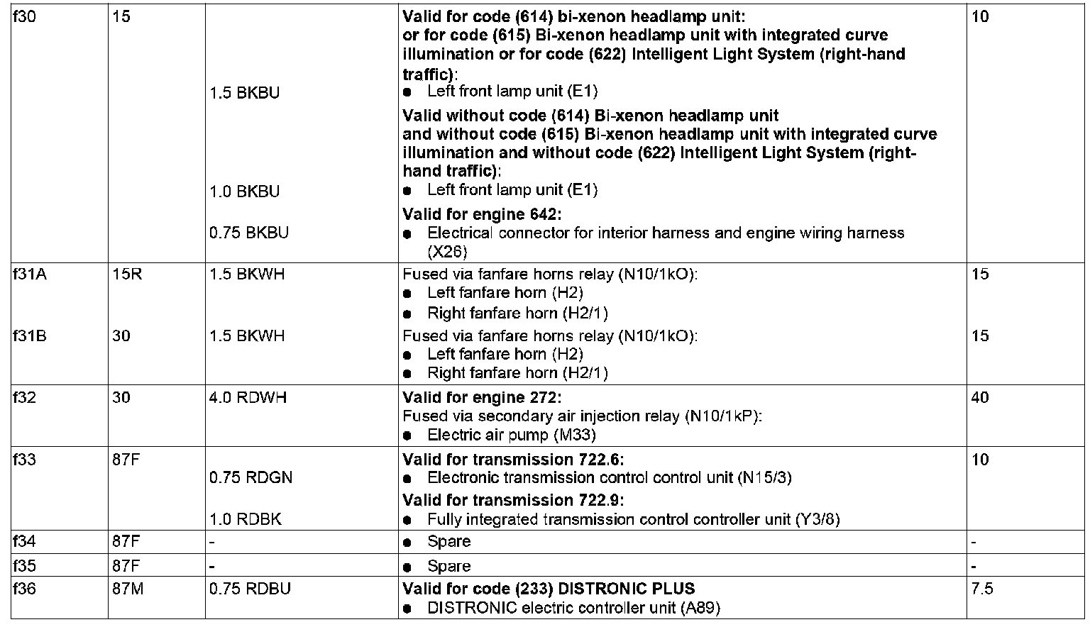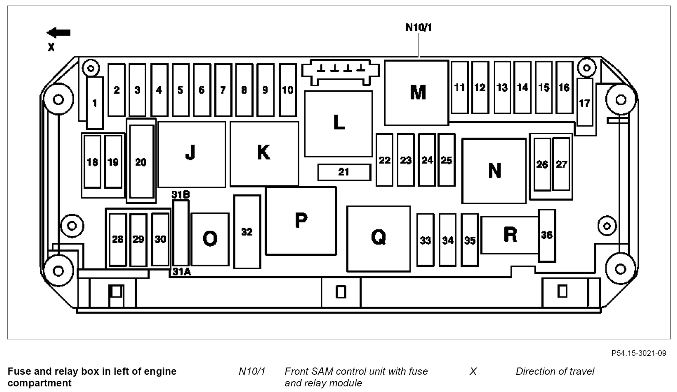 GF54.15-P-1256-03CW Fuse Assignment of Fuse and Relay Box In Left Engine Compartment