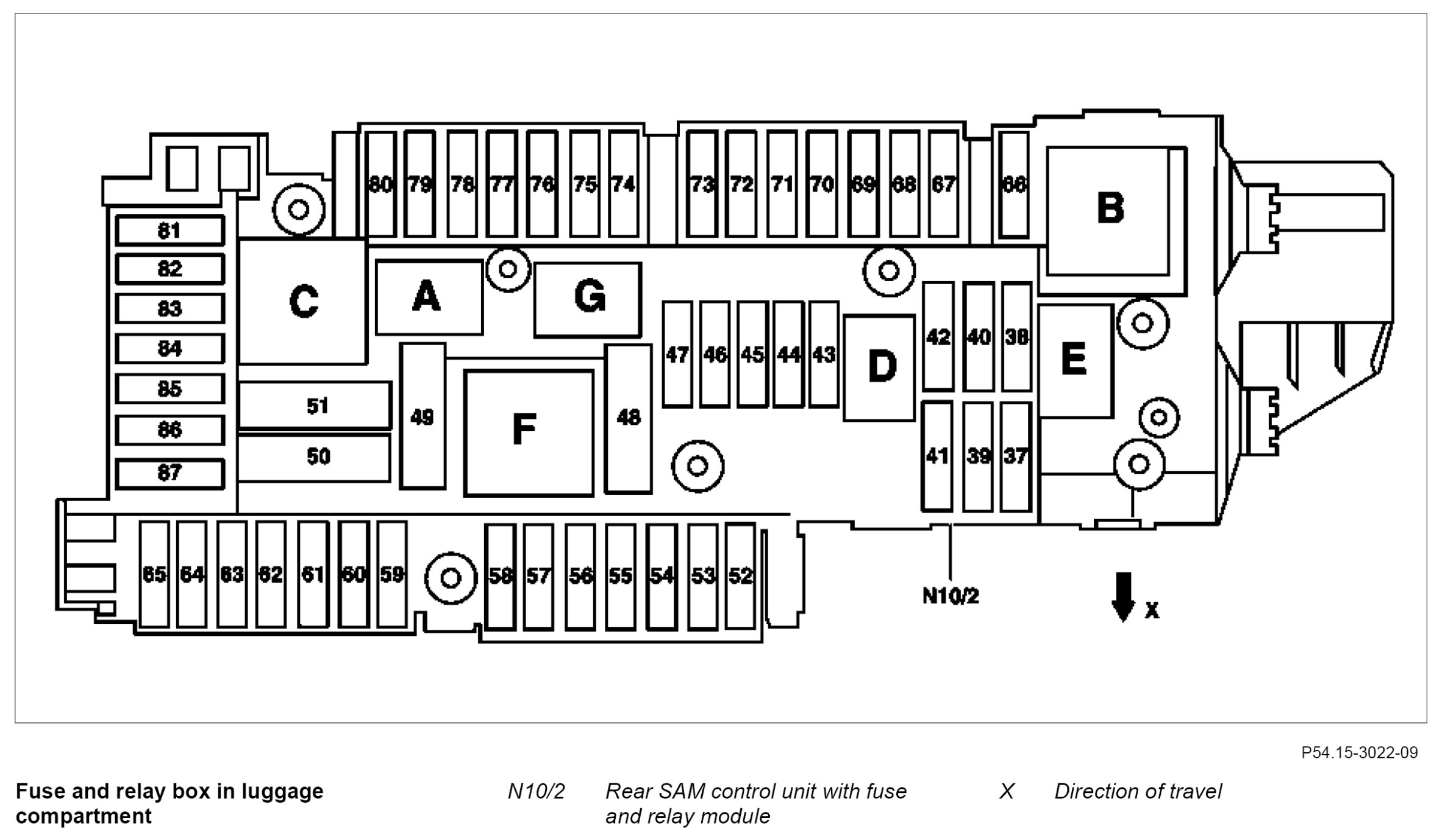 GF54.15-P-1256-06CW Fuse Assignment of Fuse and Relay Box In Trunk