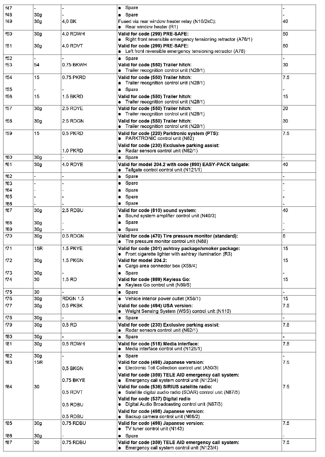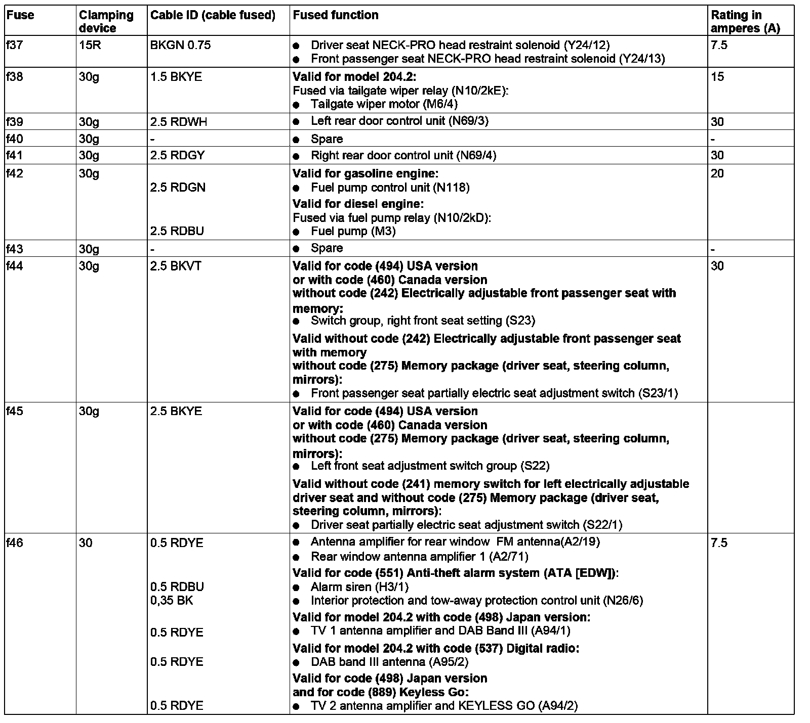 GF54.15-P-1256-06CW Fuse Assignment Of Fuse And Relay Box In Trunk