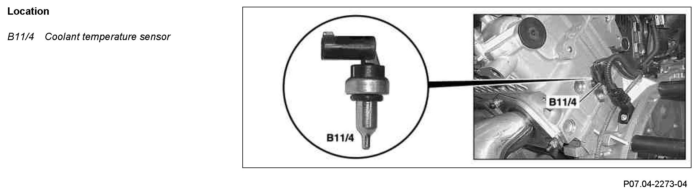 The signal voltage is plausible between 0.1 V to 4.93 V, otherwise a fault is identified and a substitute value taken by the ME-SFI [ME] control unit from a stored temperature model.