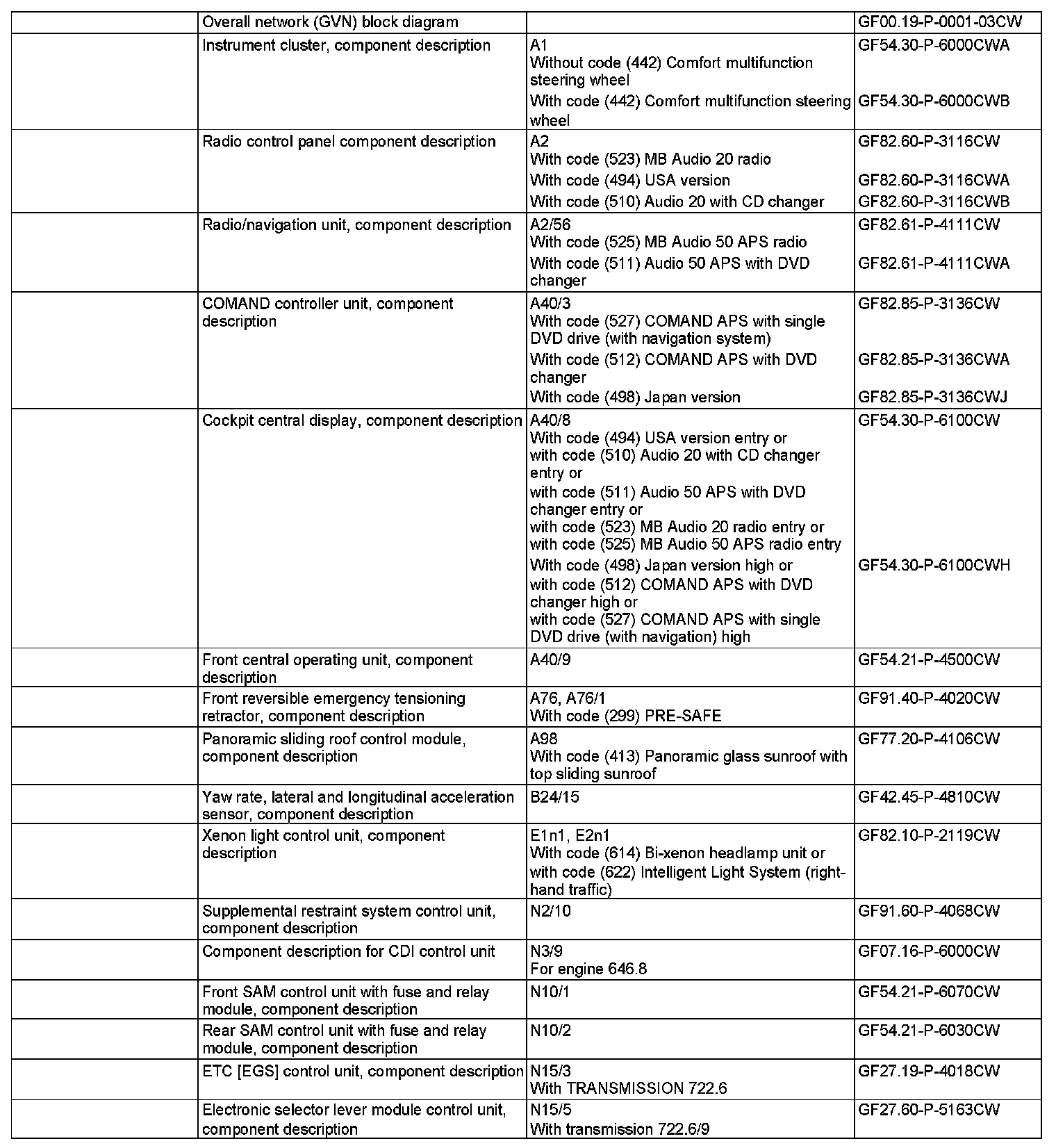 A2 Radio (with code (510) Audio 20 with CD changer or with code (523) MB Audio 20 radio)