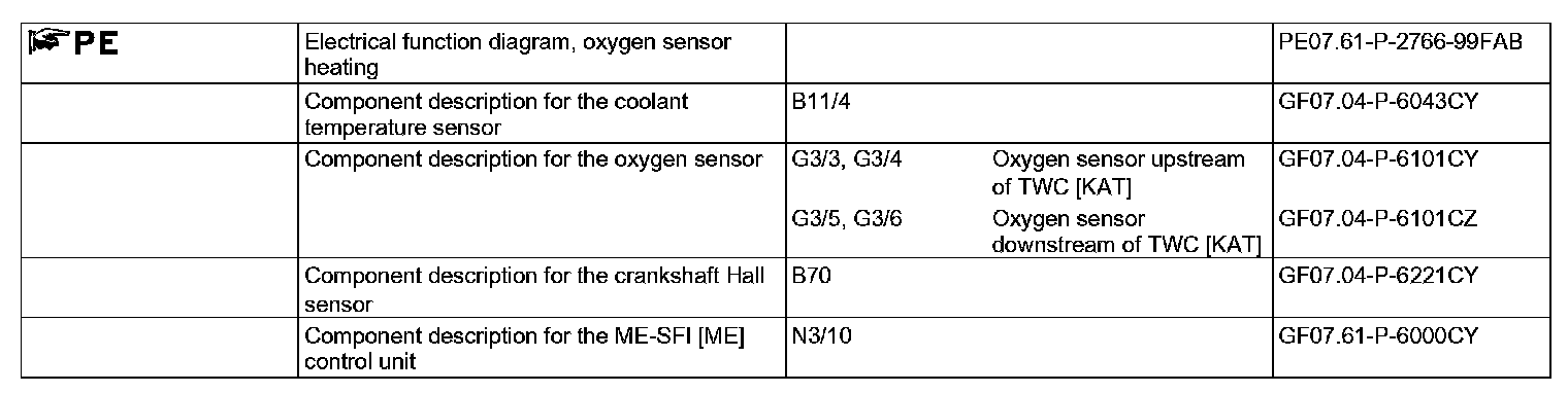 Power supply to oxygen sensor heaters takes place via "circuit 87 M" from the ME-SFI [ME] control unit.