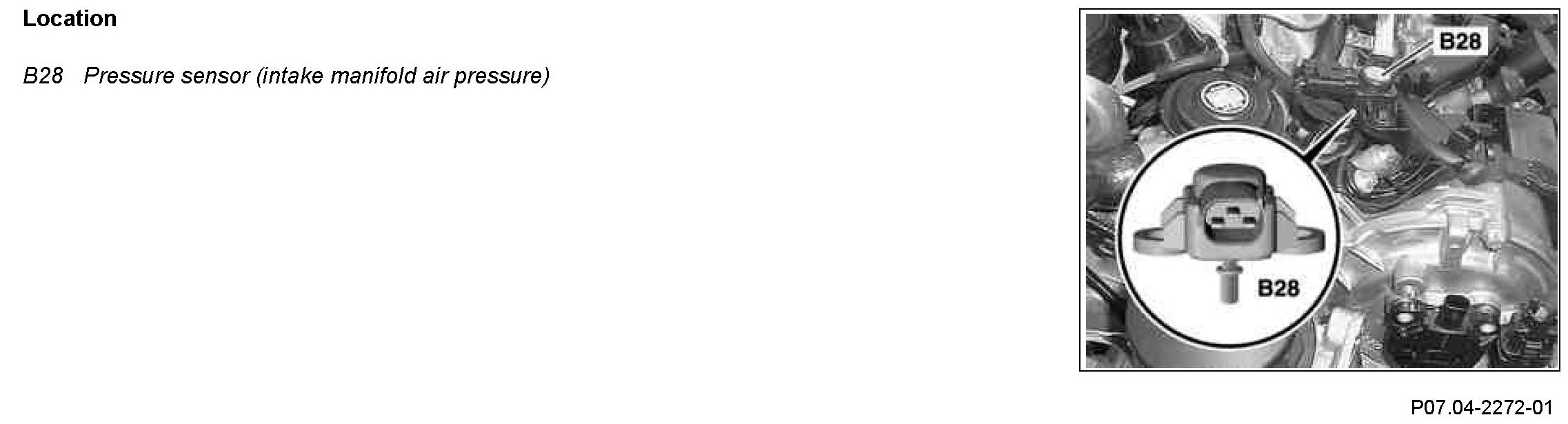 The pressure sensor is located above on the left cylinder head and connected via a rubber hose with the variable intake manifold