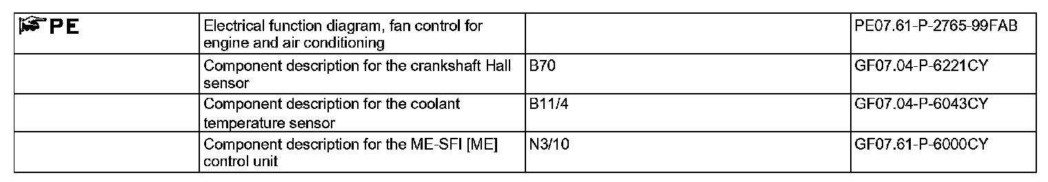 The fan motor continues running for up to 5 minutes after ignition "OFF" if the coolant temperature, the engine oil temperature (from the temperature model) or the temperature of the ME-SFI [ME] control unit exceeds specified maximum values.