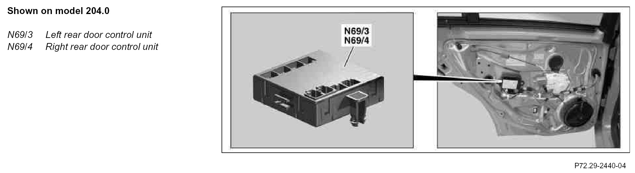 The rear door control units read in the following sensors and switches, actuates their function and instrument illumination and switch subsequent loads via semiconductor switches