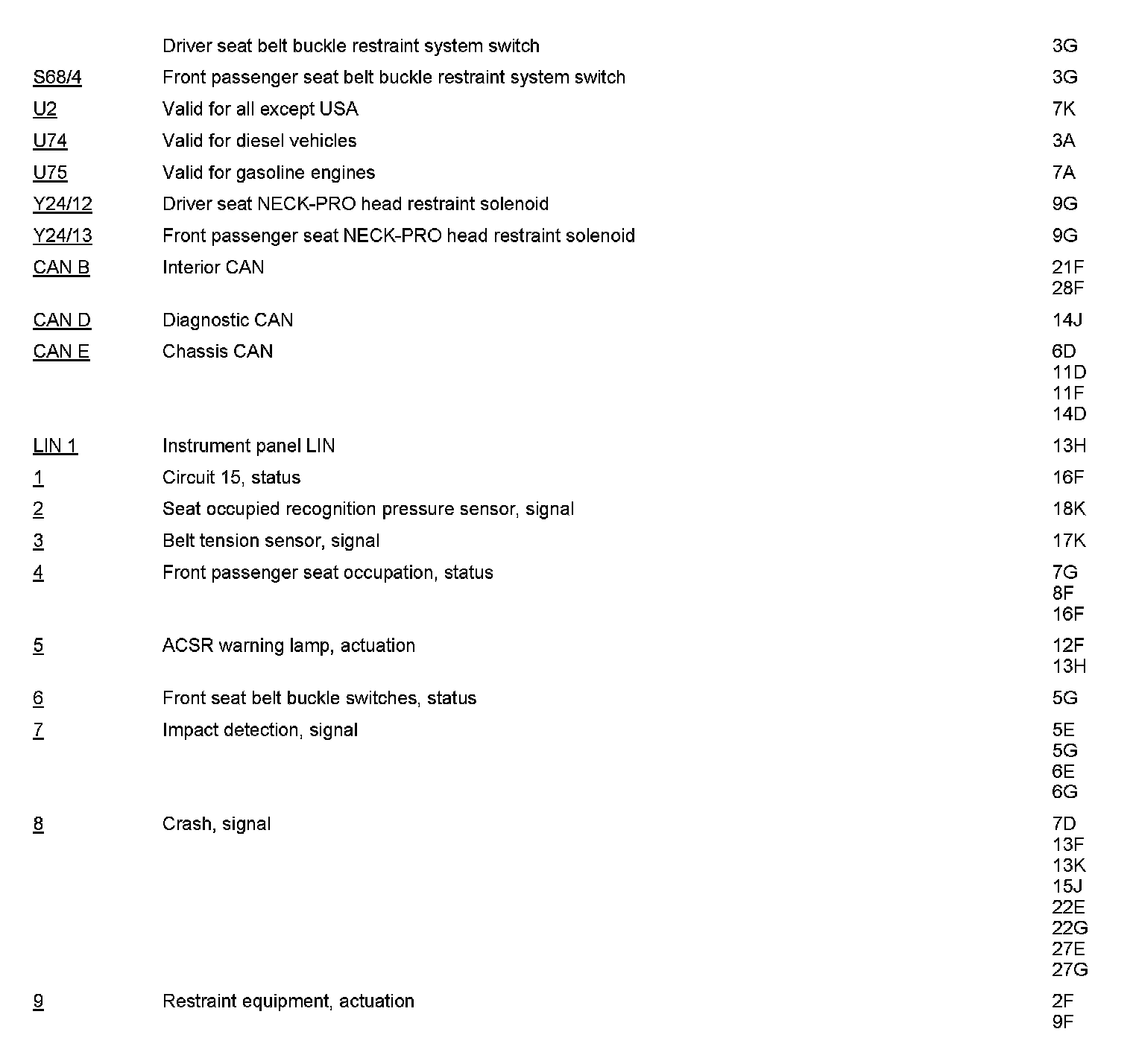 PE91.60-P-2052FAA Electrical Function Schematic, Supplemental Restraint System (SRS)