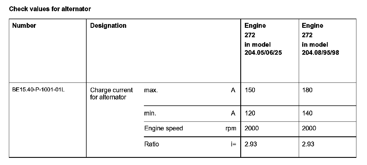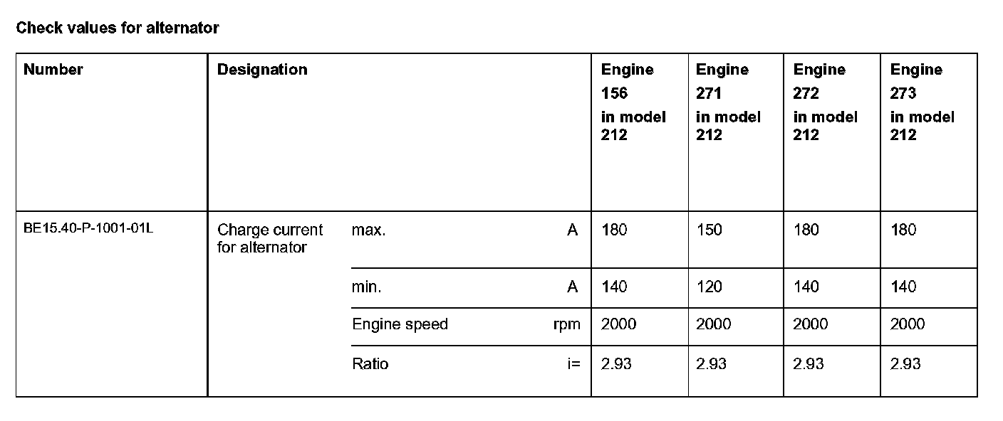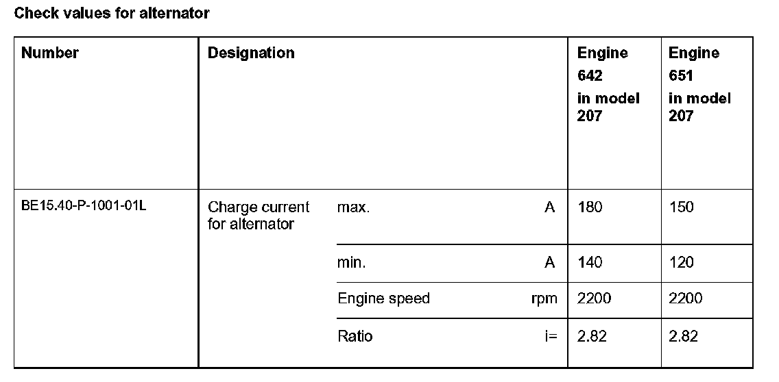BE15.40-P-1000-01L Check values for alternator