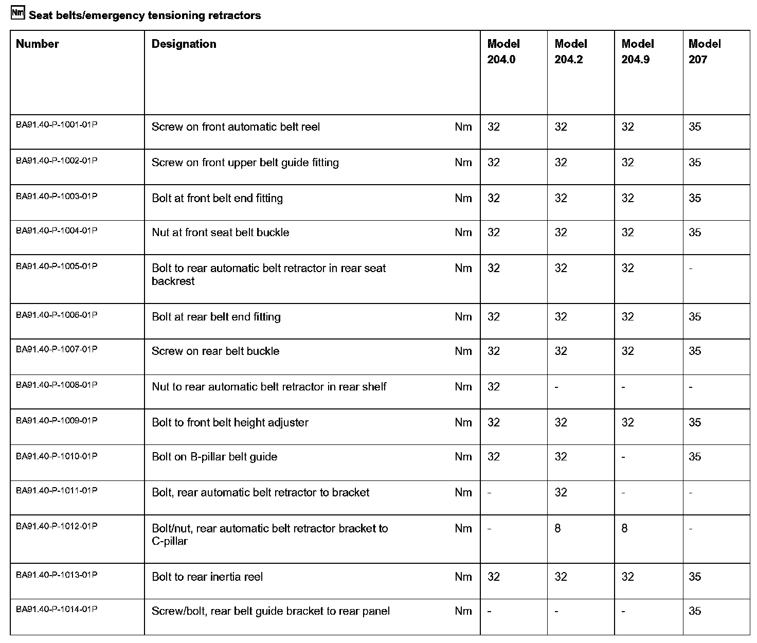 Seat Belts/Emergency Tensioning Retractors: