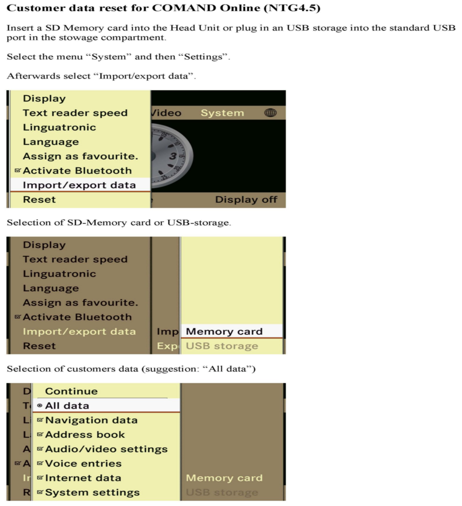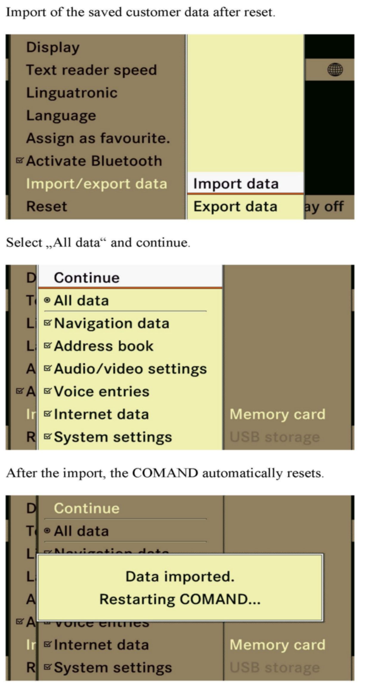 2. Export the customer's data from the COMAND unit (A40/3) onto an SD card (see attachment for instructions)