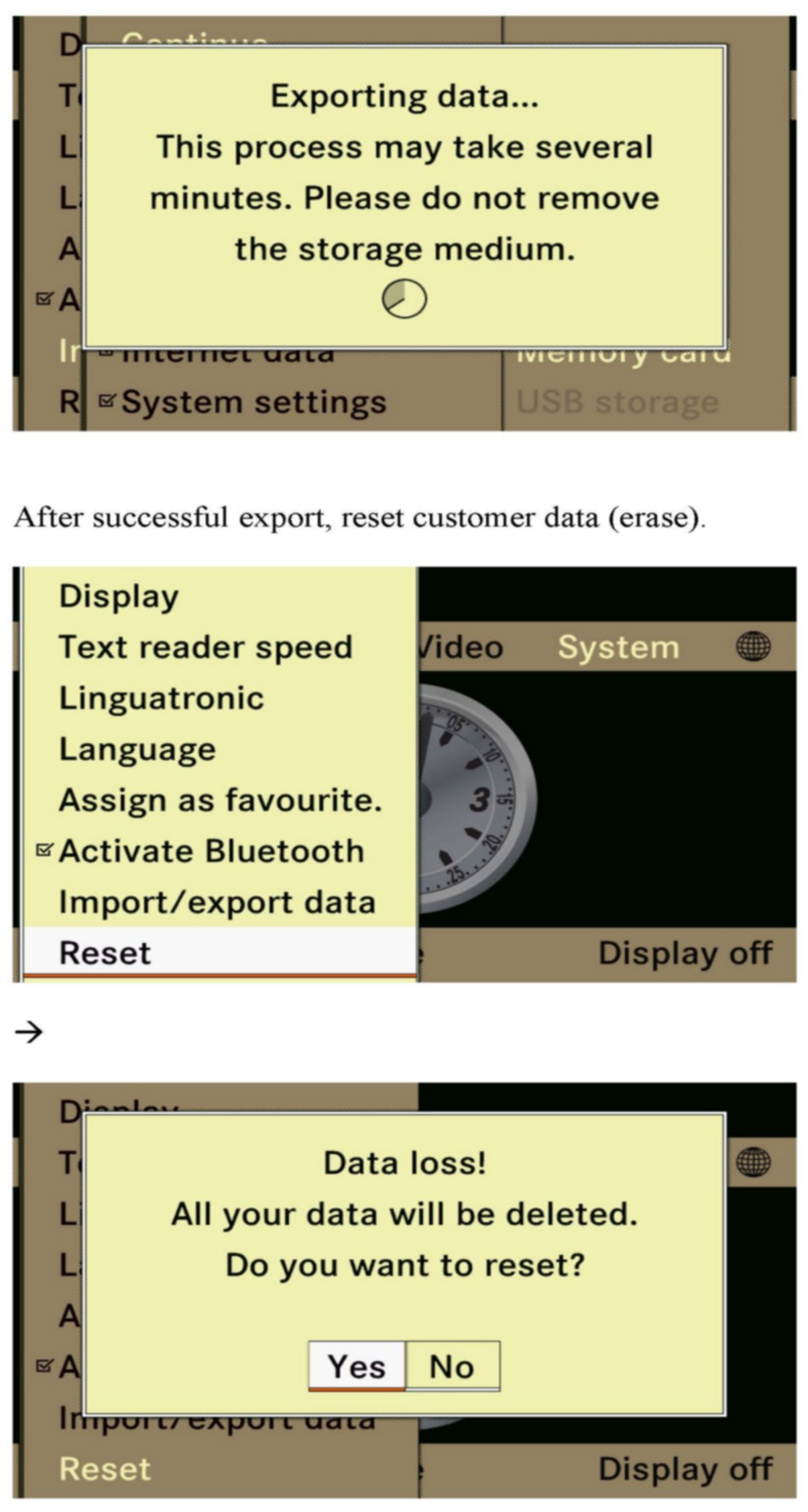 3. Perform a reset of the customer's data (important: all the customer's data, such as navigation destinations, address book entries etc. will be lost)