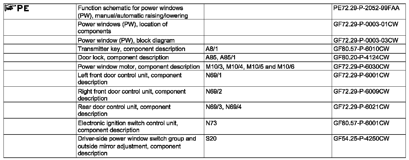 GF72.29-P-0003CW Power Windows (PW [EFH]), Function
