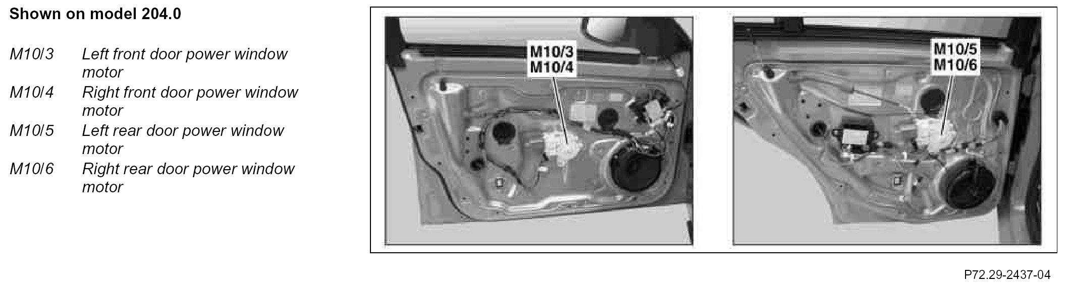 The power window motors open and close the front and rear side windows.The current position is determined via the Hall sensor signals of the power window motors by the
