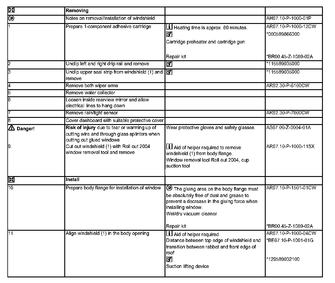 AR67.10-P-1000CW Remove/Install Windshield