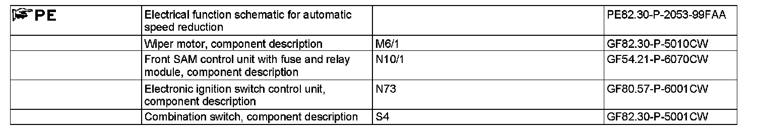 If the value of approx. v = 6 km/h is exceeded again as the vehicle speed increases, the front SAM control unit automatically switches the wiper motor back to the wiper speed set on the combination switch.