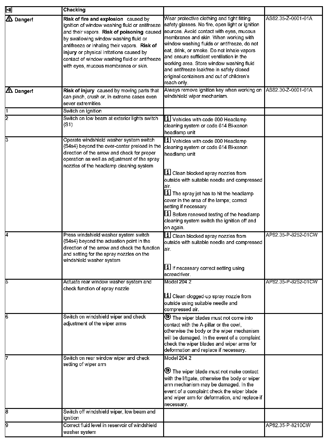 AP82.30-P-8252CW Windshield Wipers, Windshield Washer System And Headlamp Cleaning System - Function Check