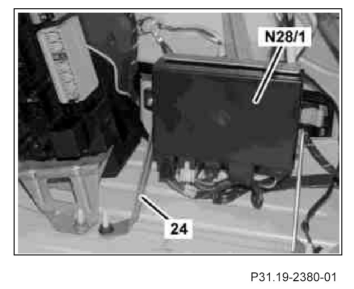 3. Insert trailer recognition control unit (N28/1) in the bracket (24) and faster with nut.