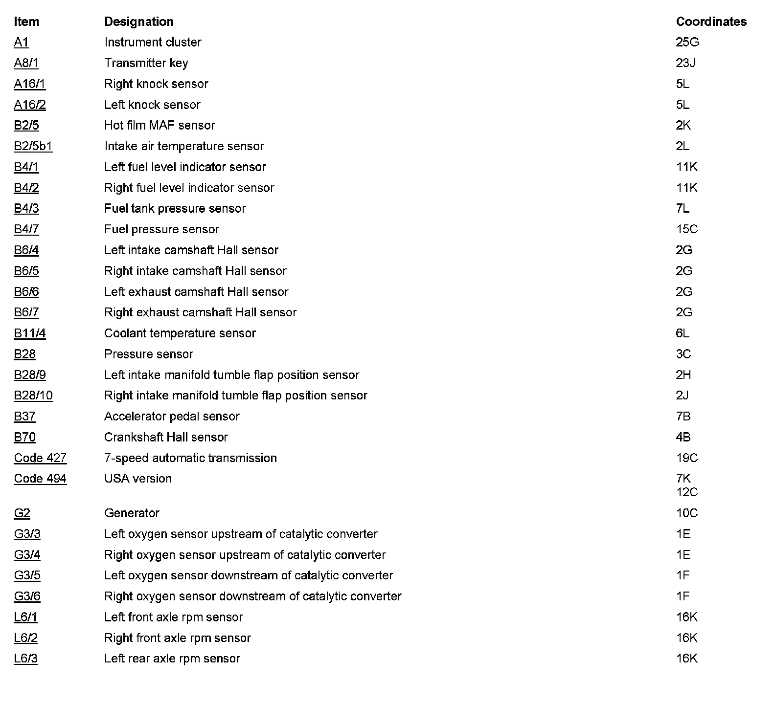 Component Locations: Component Location photographs can be found via their component names at the vehicle level. Component Locations