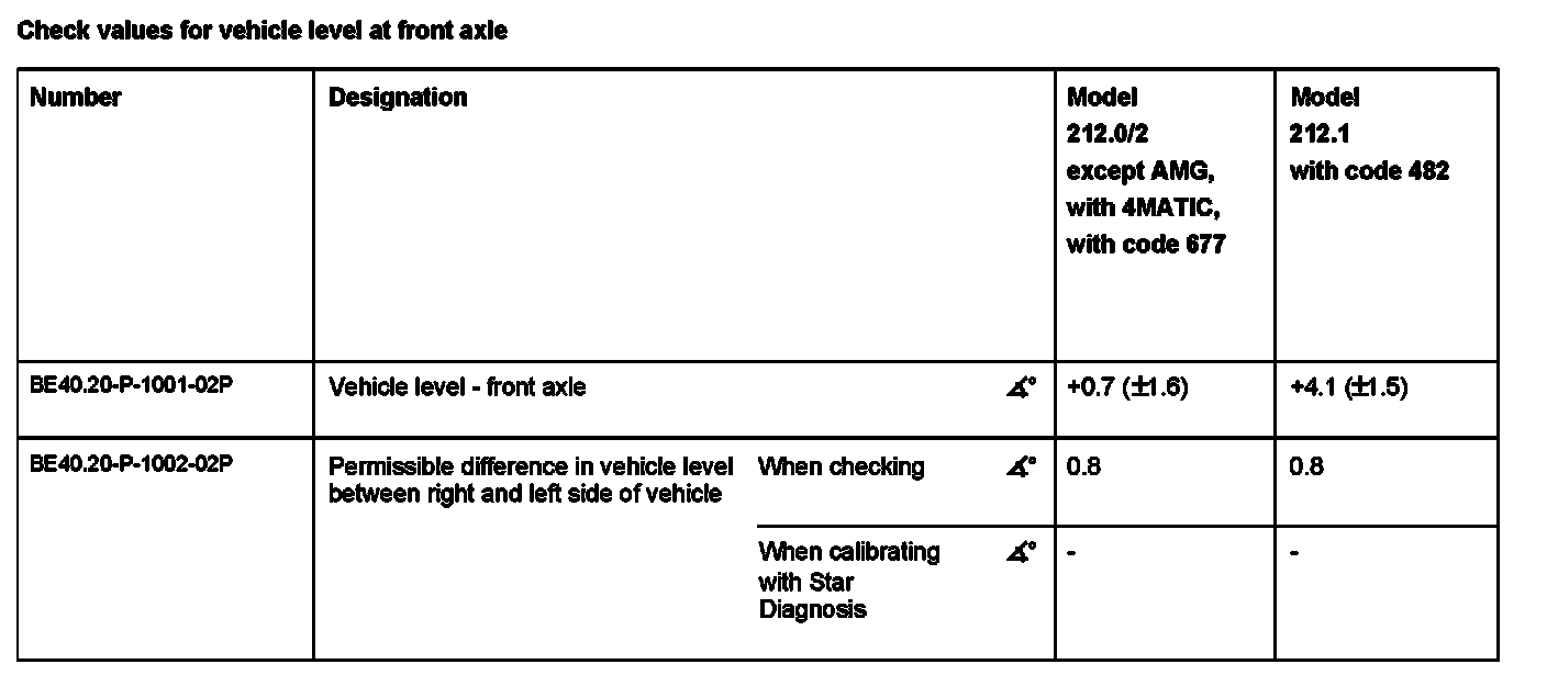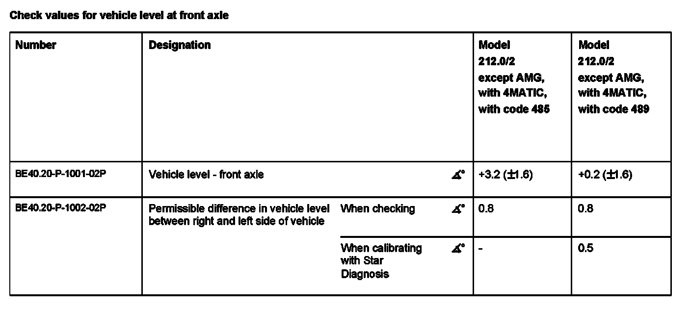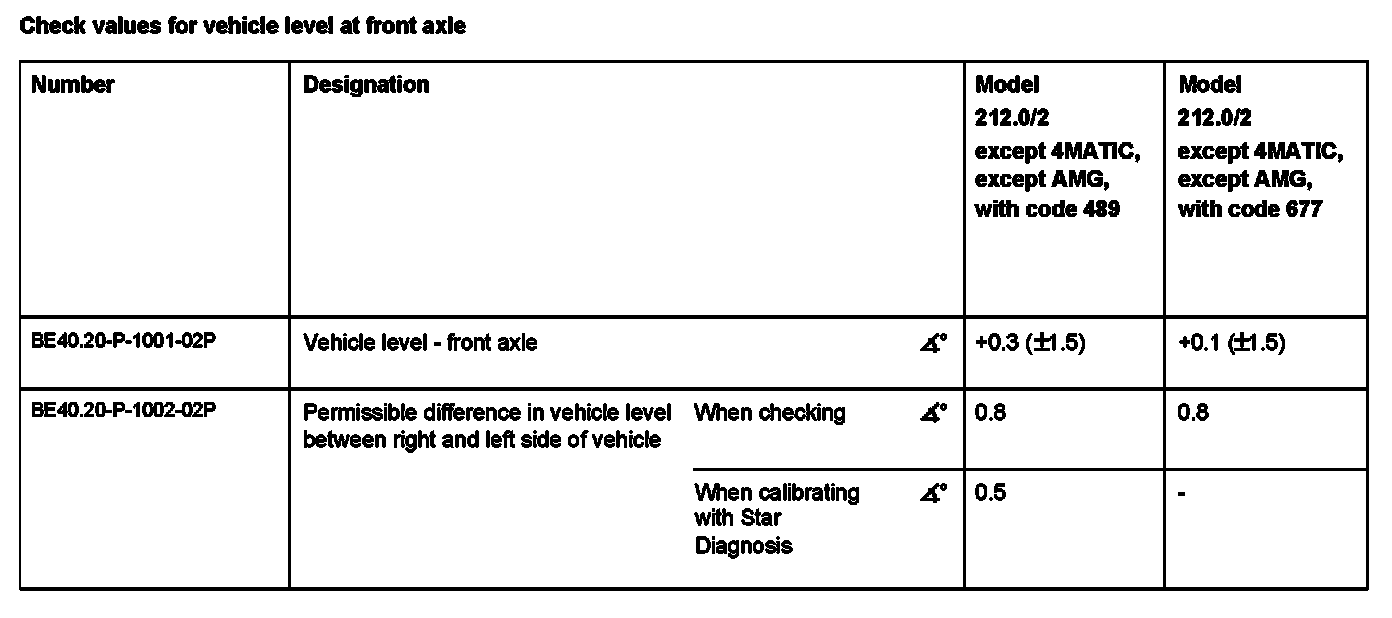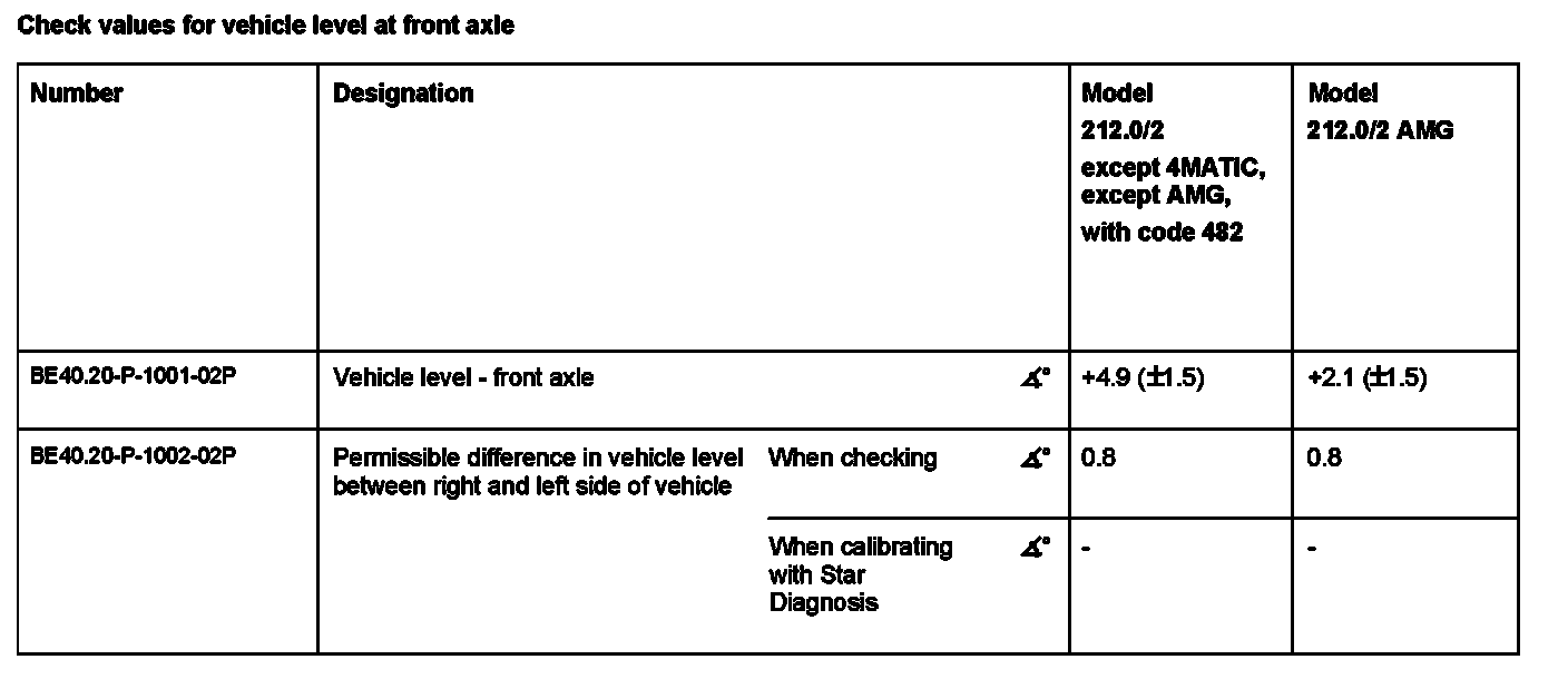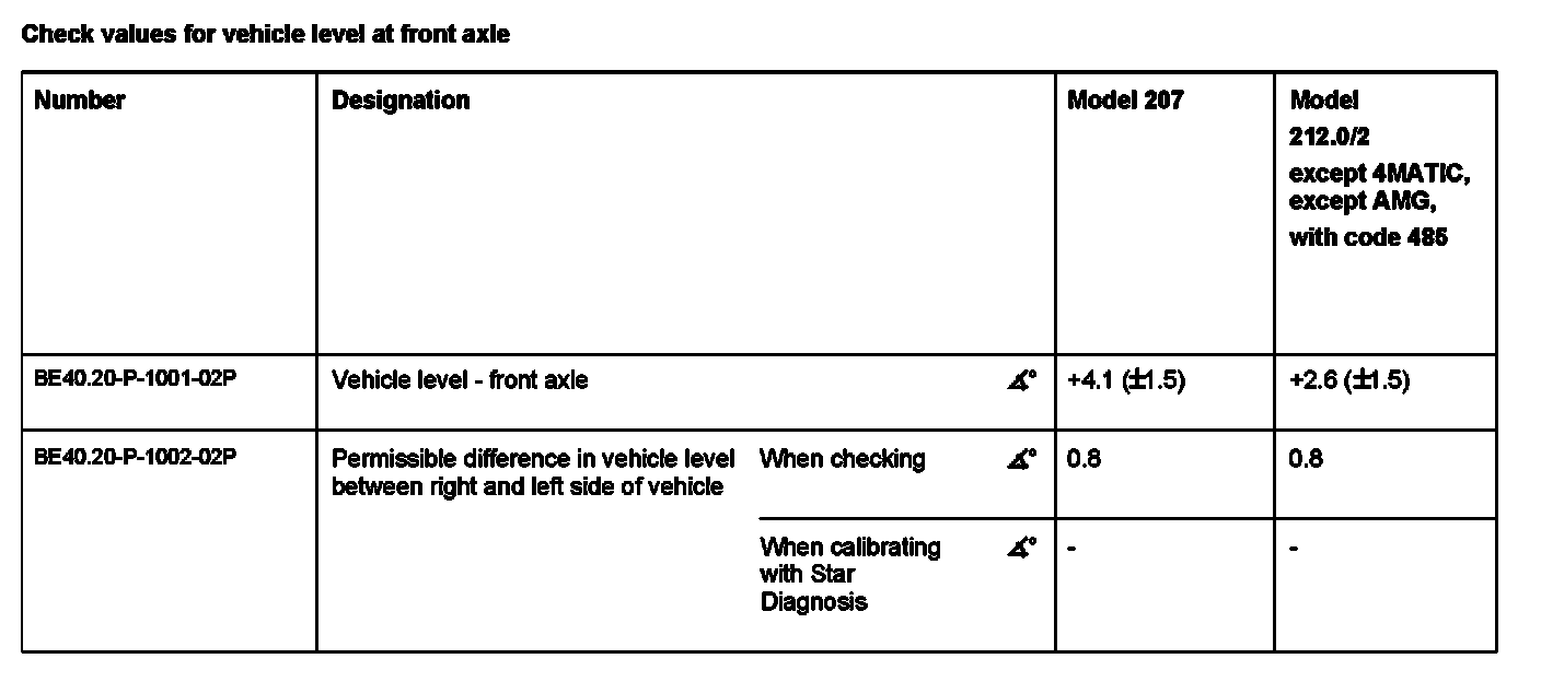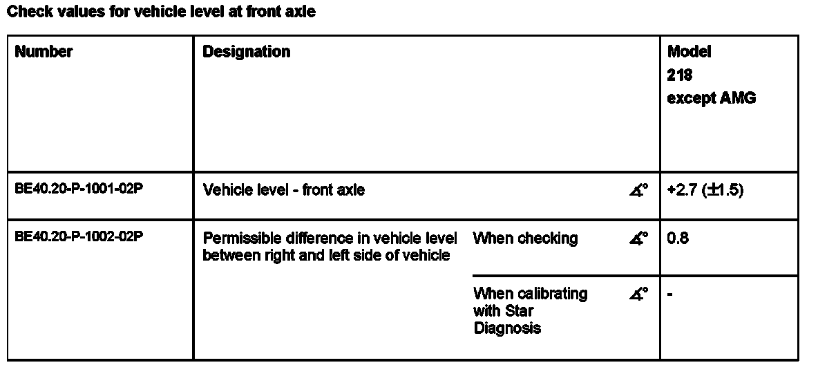 Check values for vehicle level at front axle: