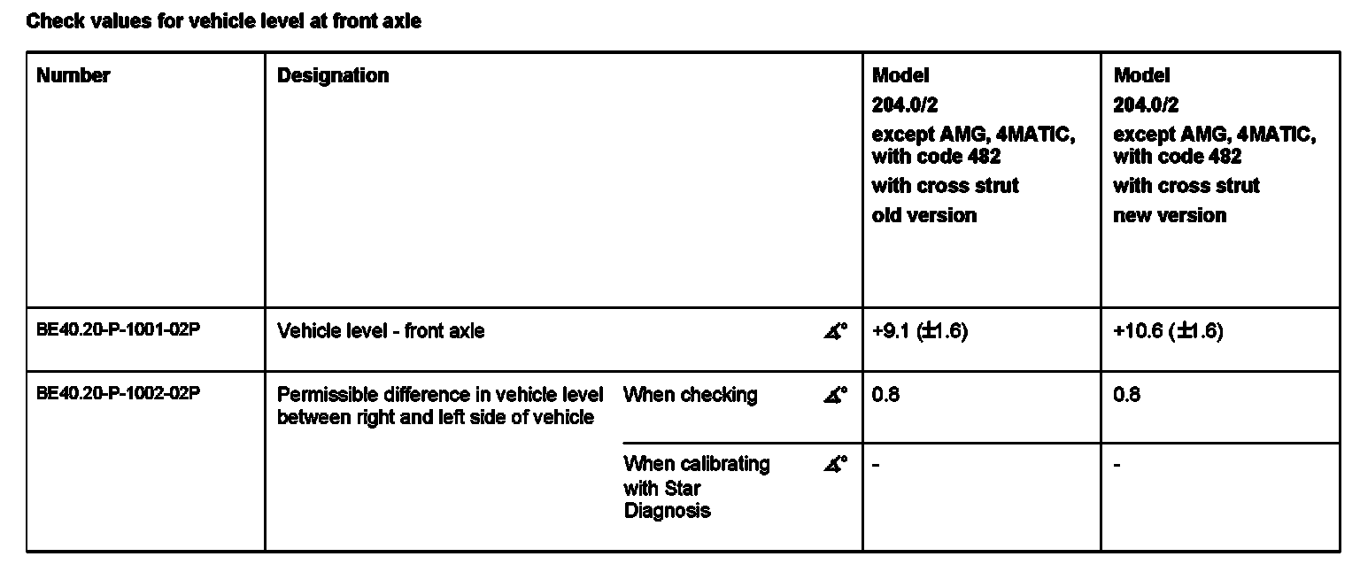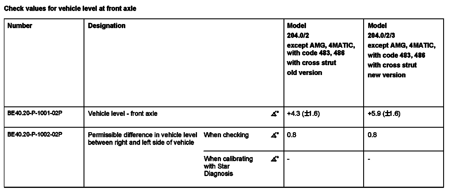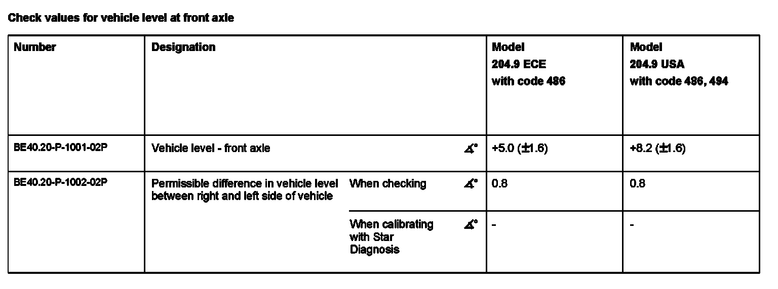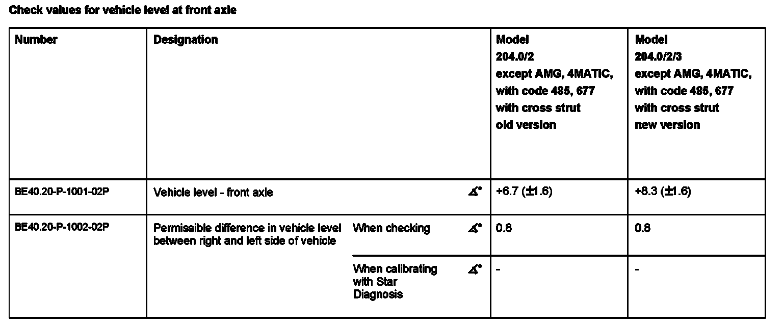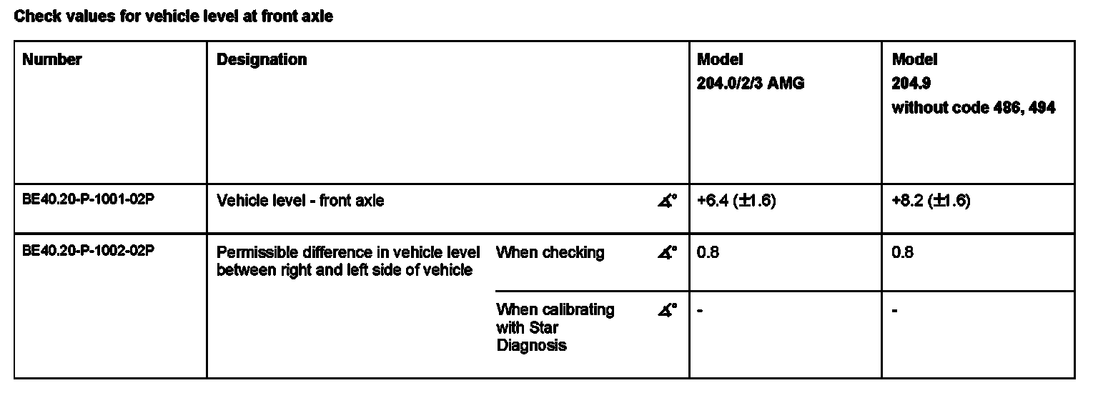 Check values for vehicle level at front axle:
