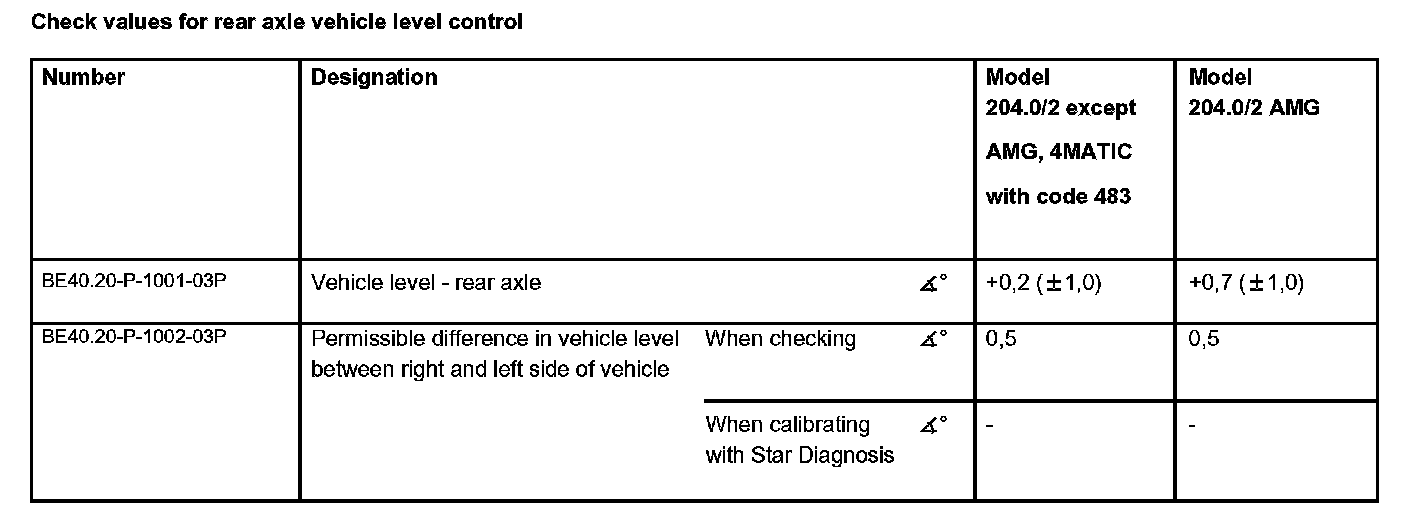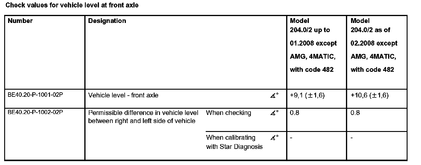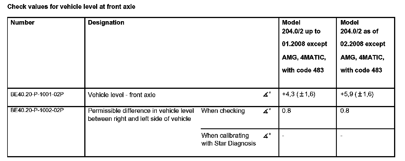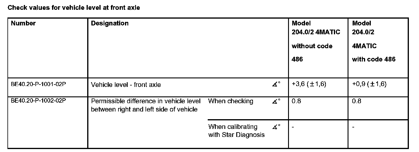 Check values for vehicle level at front axle: