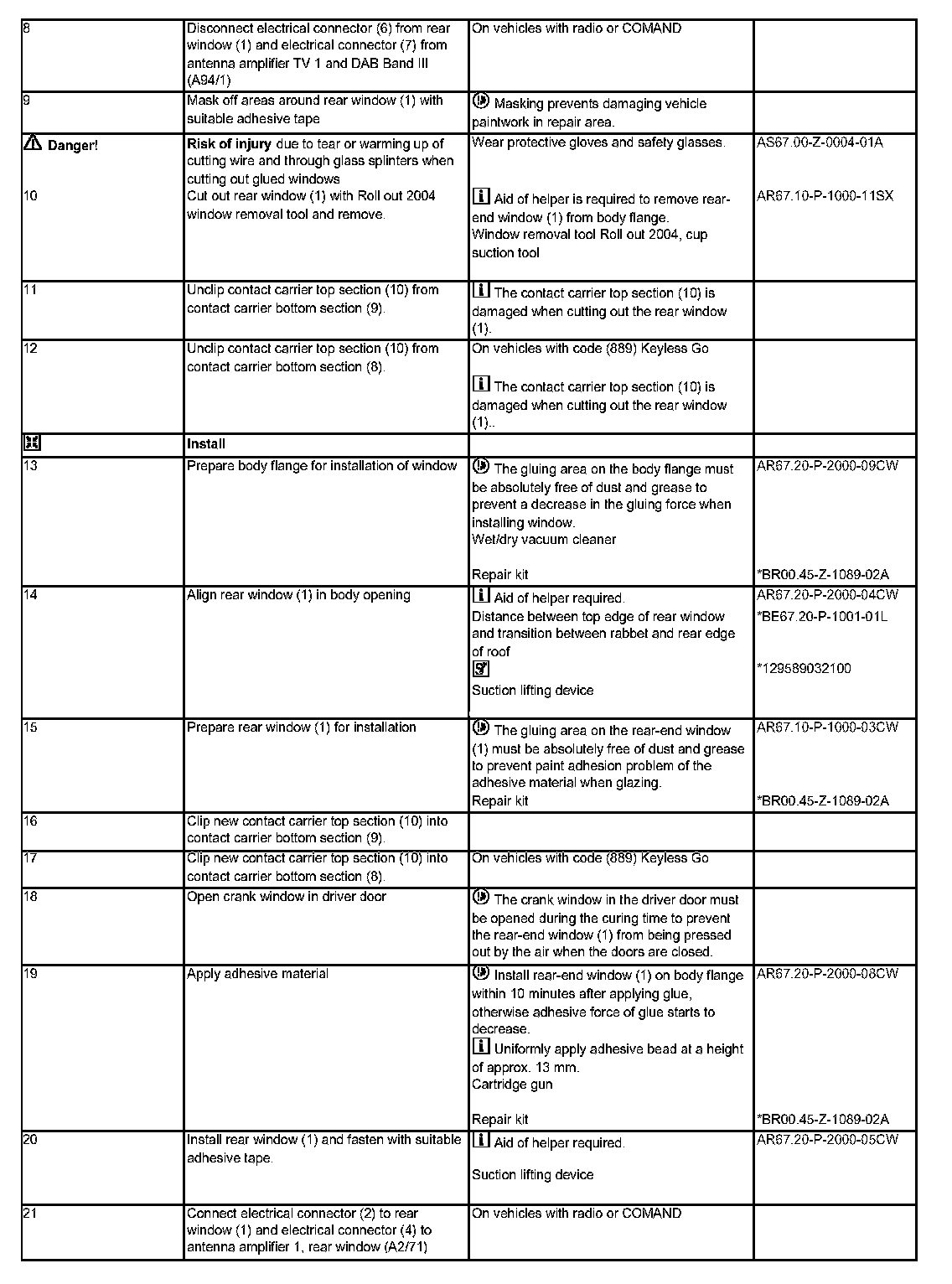 AR67.20-P-2000CW Remove/install Rear WindowComponent Identification: