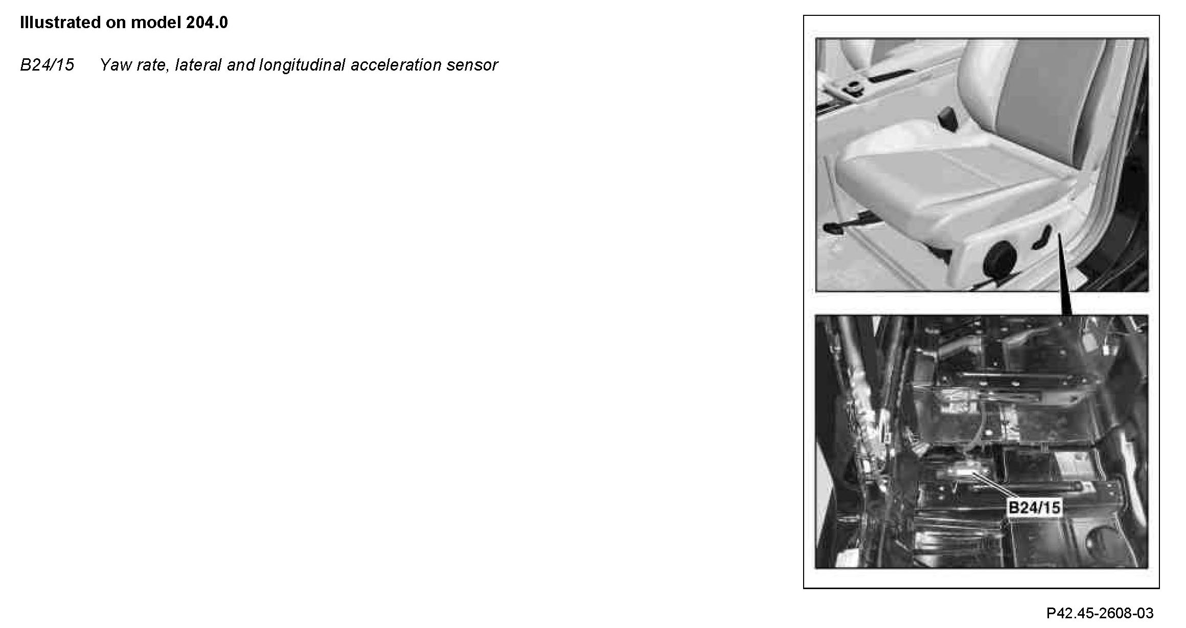 The yaw rate, lateral and longitudinal acceleration sensor is located below the driver's seat on the vehicle floor.