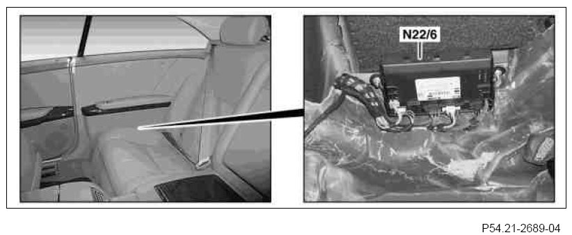 The rear control unit controls the functions of the rear power windows and the functions of the rear head restraints. The rear control unit is connected to the interior CAN to allow data to be exchanged.