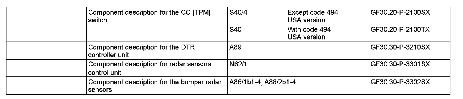 Using the DTR distance potentiometer (S40r1, S40/4r1), which is integrated in the CC [TPM] switch, the target distance to the vehicle ahead can be set in six increments between approx. 1.0 s and 2.0 s depending on the speed.