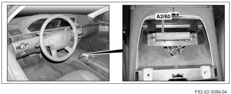 The center console Keyless Go antenna is located under the center console in the area of the turn/push control (A40/9s11).