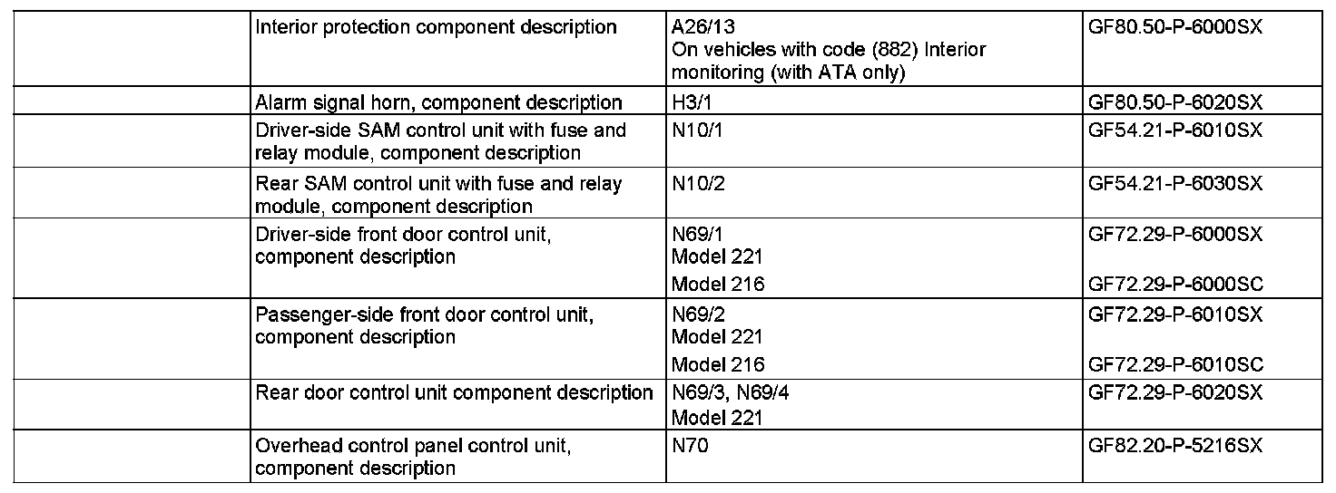 The rear SAM control unit checks with the inclination sensor integrated into the alarm siren the vehicle inclination a number of times each second.