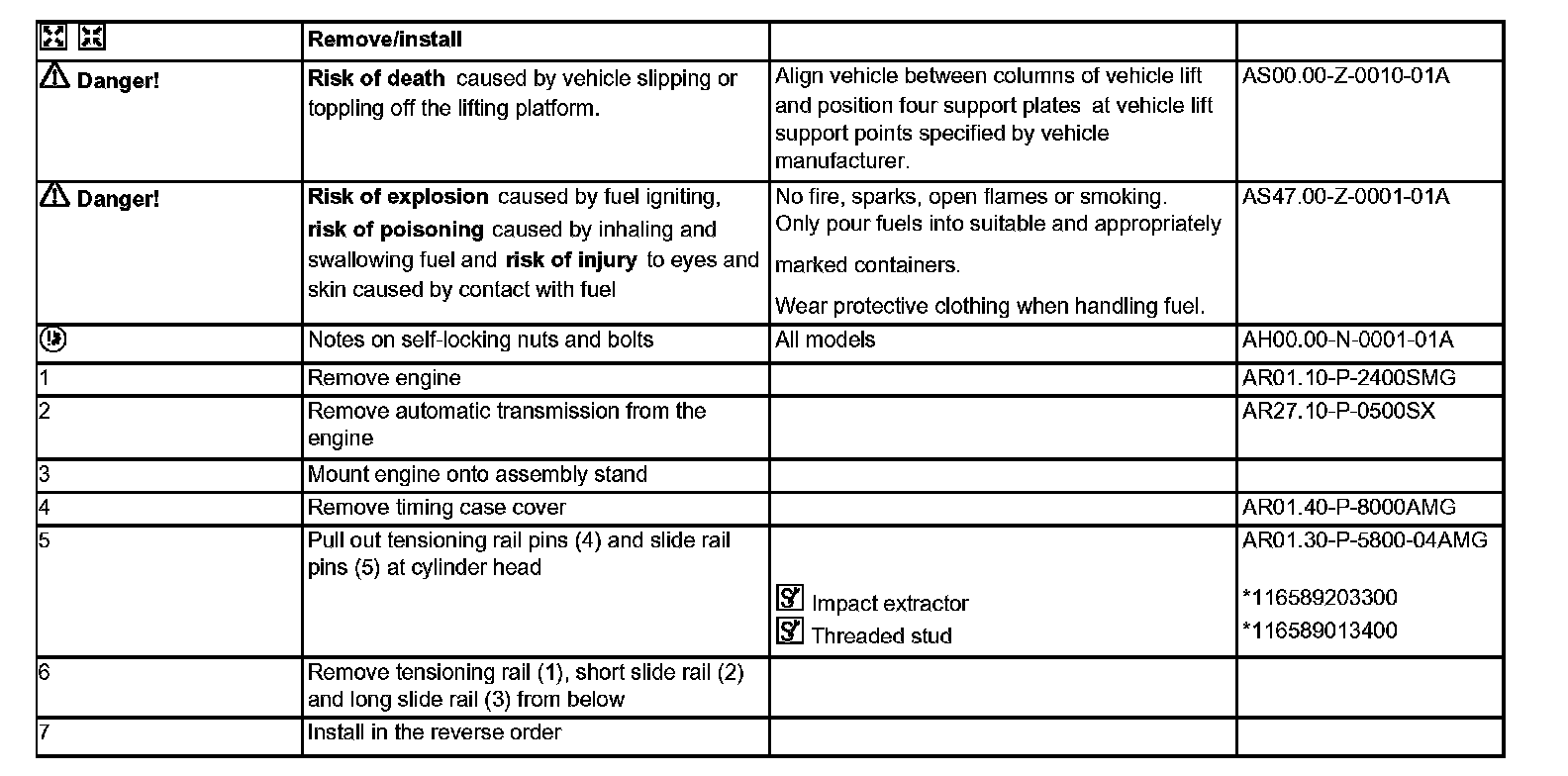 AR05.10-P-8500SMG Remove/install tensioning rail and slide rail in timing case cover