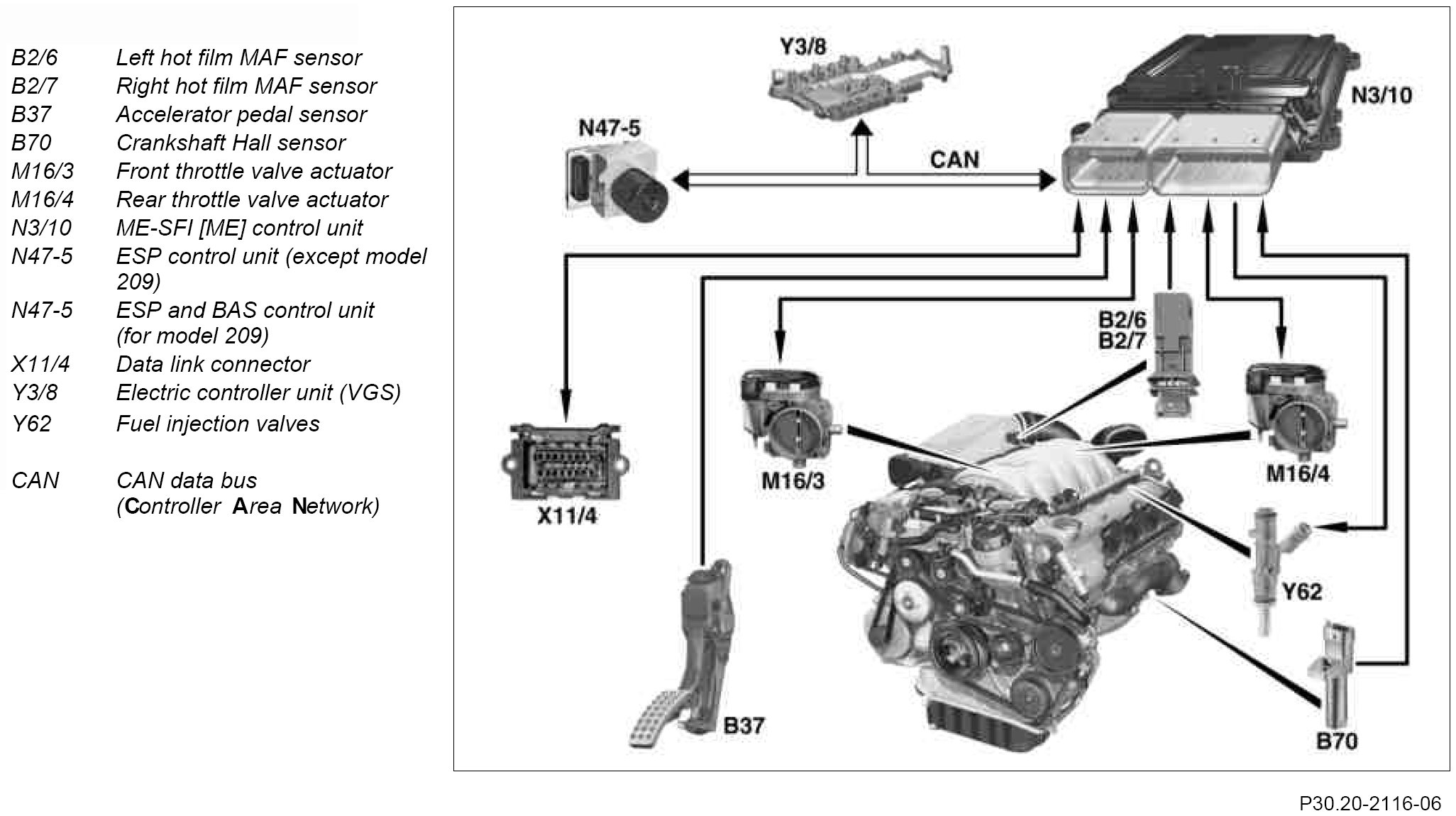 Faults detected by the accelerator pedal sensor and throttle valve actuators are stored in the fault memory and can be read out and deleted with the STAR DIAGNOSIS.