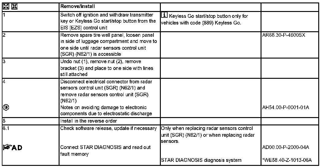 AR54.65-P-0040SC Remove/Install Radar Sensors Control Unit