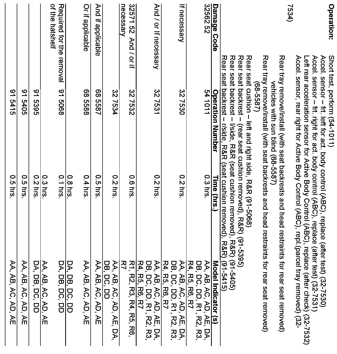 If you receive customer reports in the above model vehicles experiencing inharmonic body movements while stationary or driving and/or with the following fault codes, replace the body acceleration sensors. Refer to WIS document GF32.50-P-4622SX (Model 216 and 221) and GF32.31-P-4100A (Model 230).