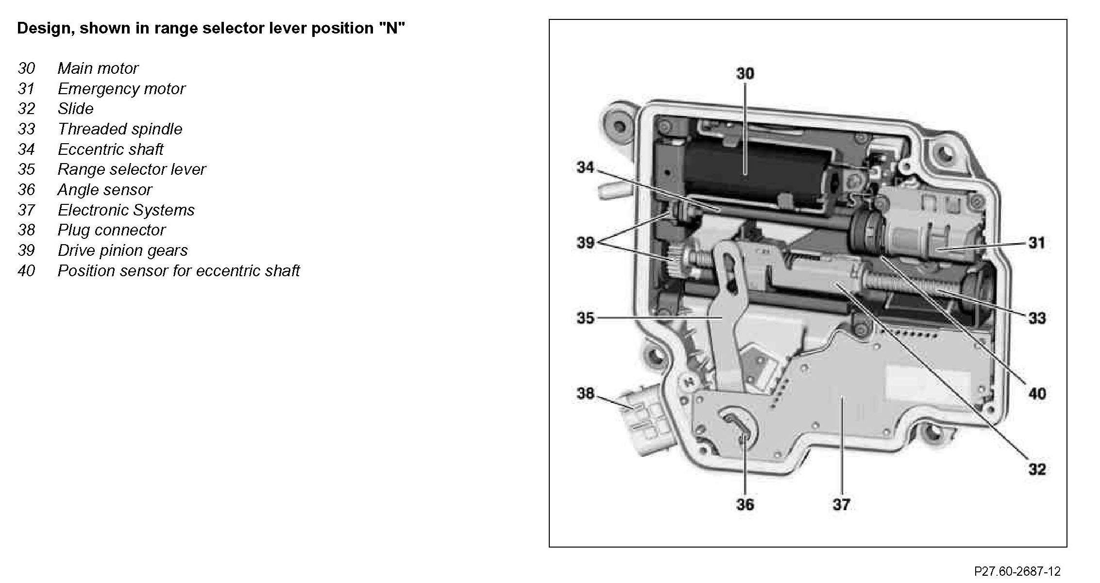 ^ Angle sensor which records the actual position of the integrated range selector lever