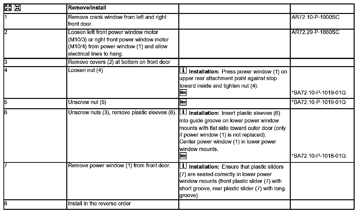 AR72.10-P-1800SC Remove/install Front Door Window Lifter