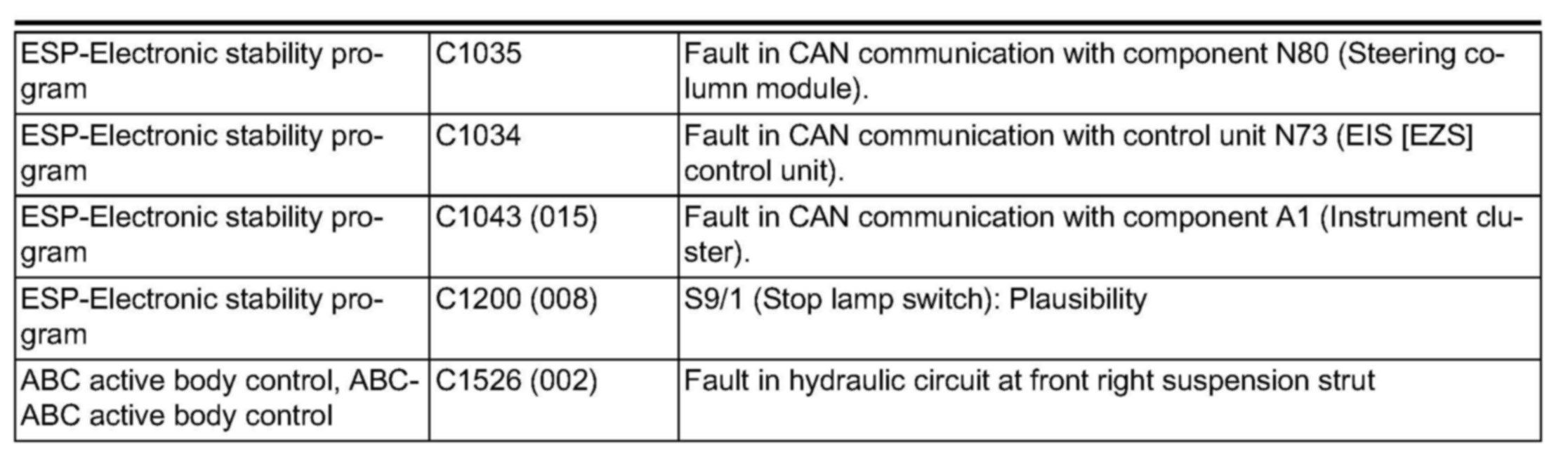 Electrical - ESP, ABS & BAS 'Defective' Message/DTC's